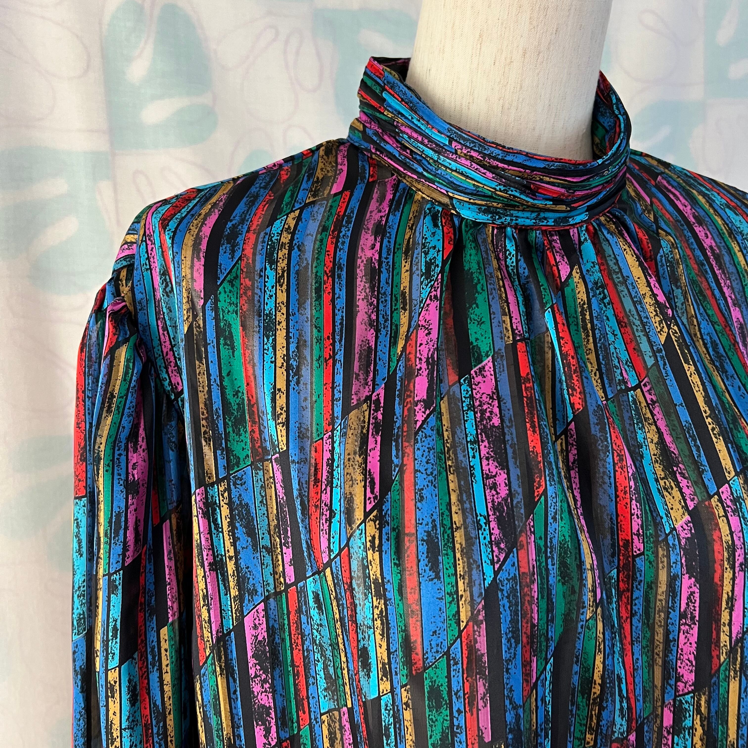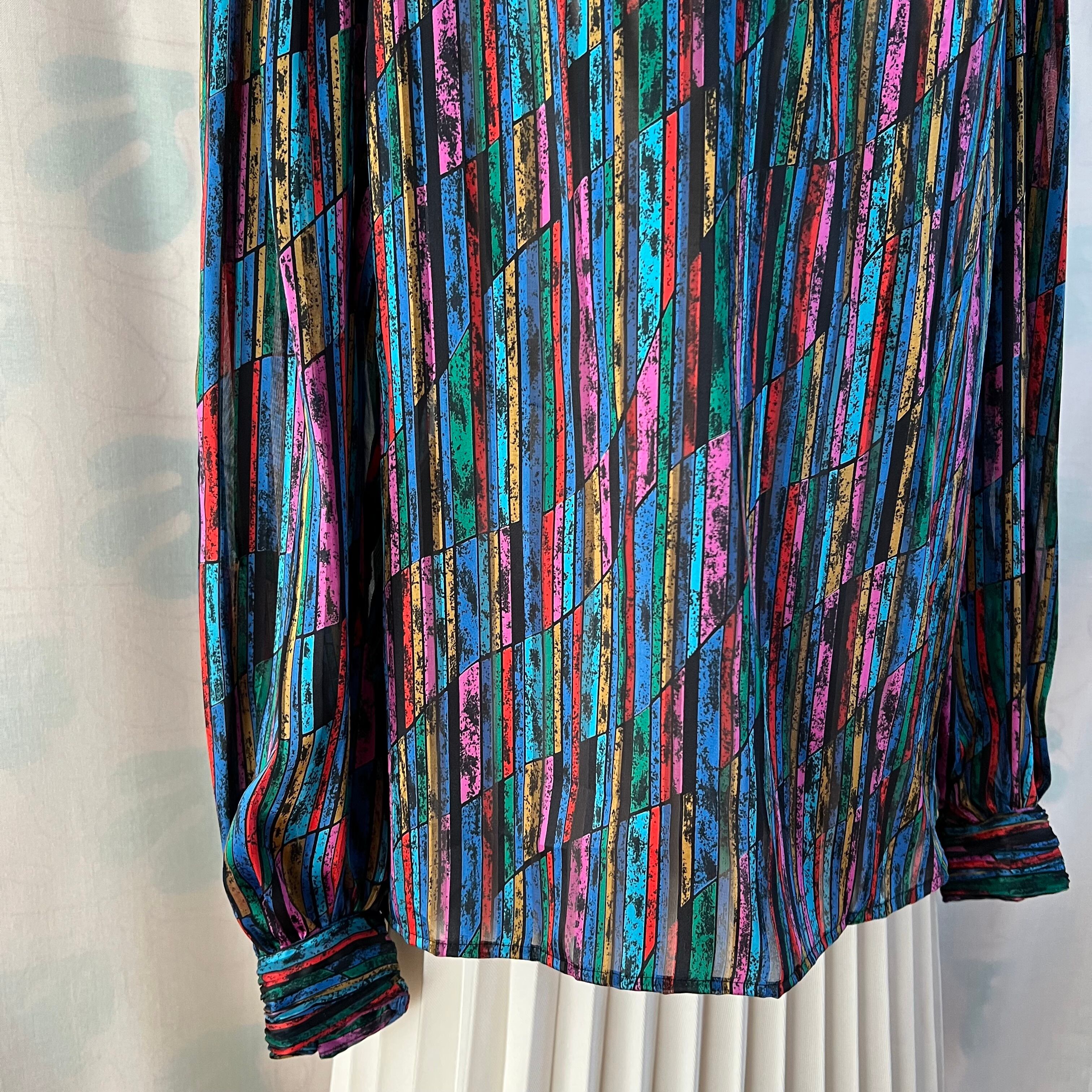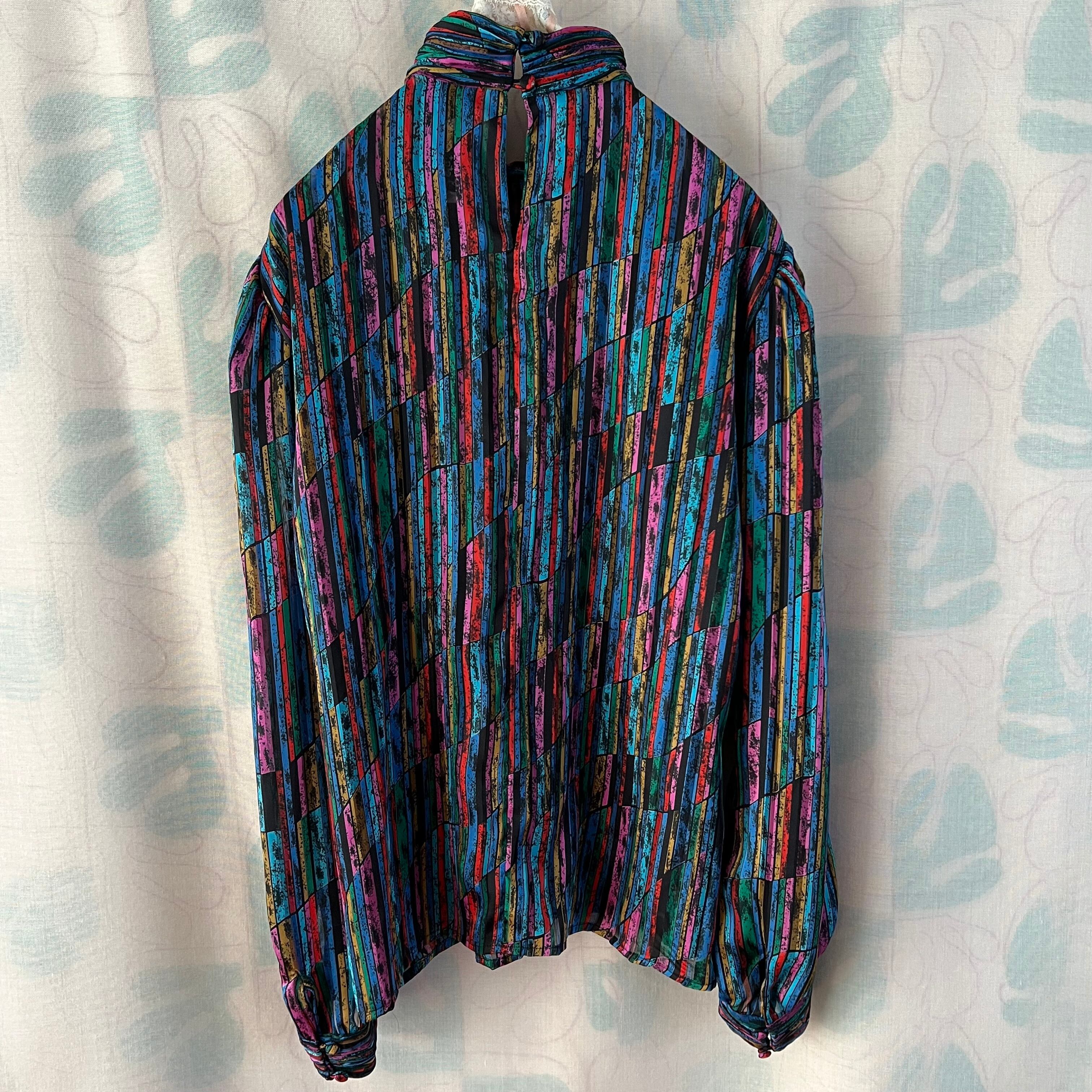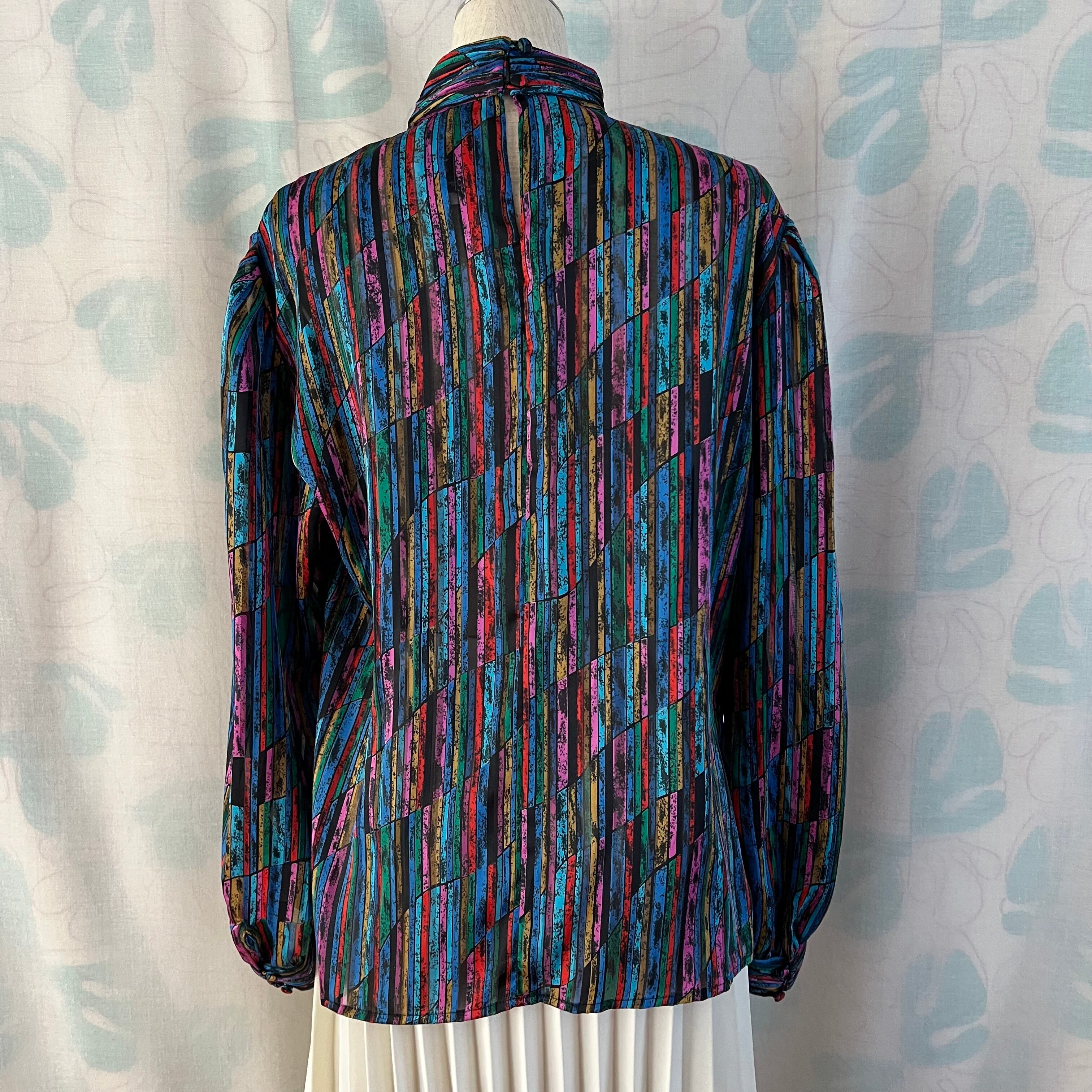 80's Mosaic pattern sheer blouse