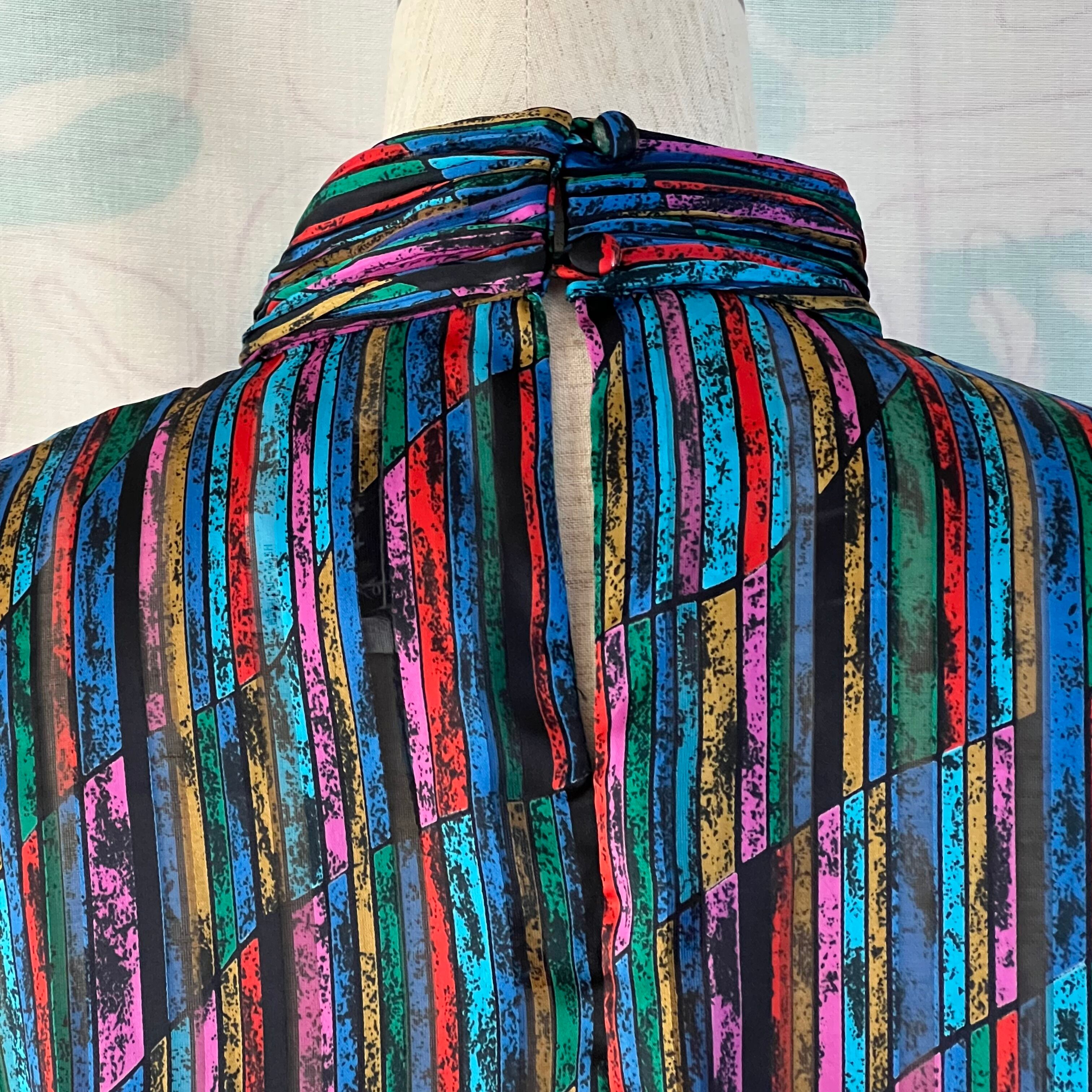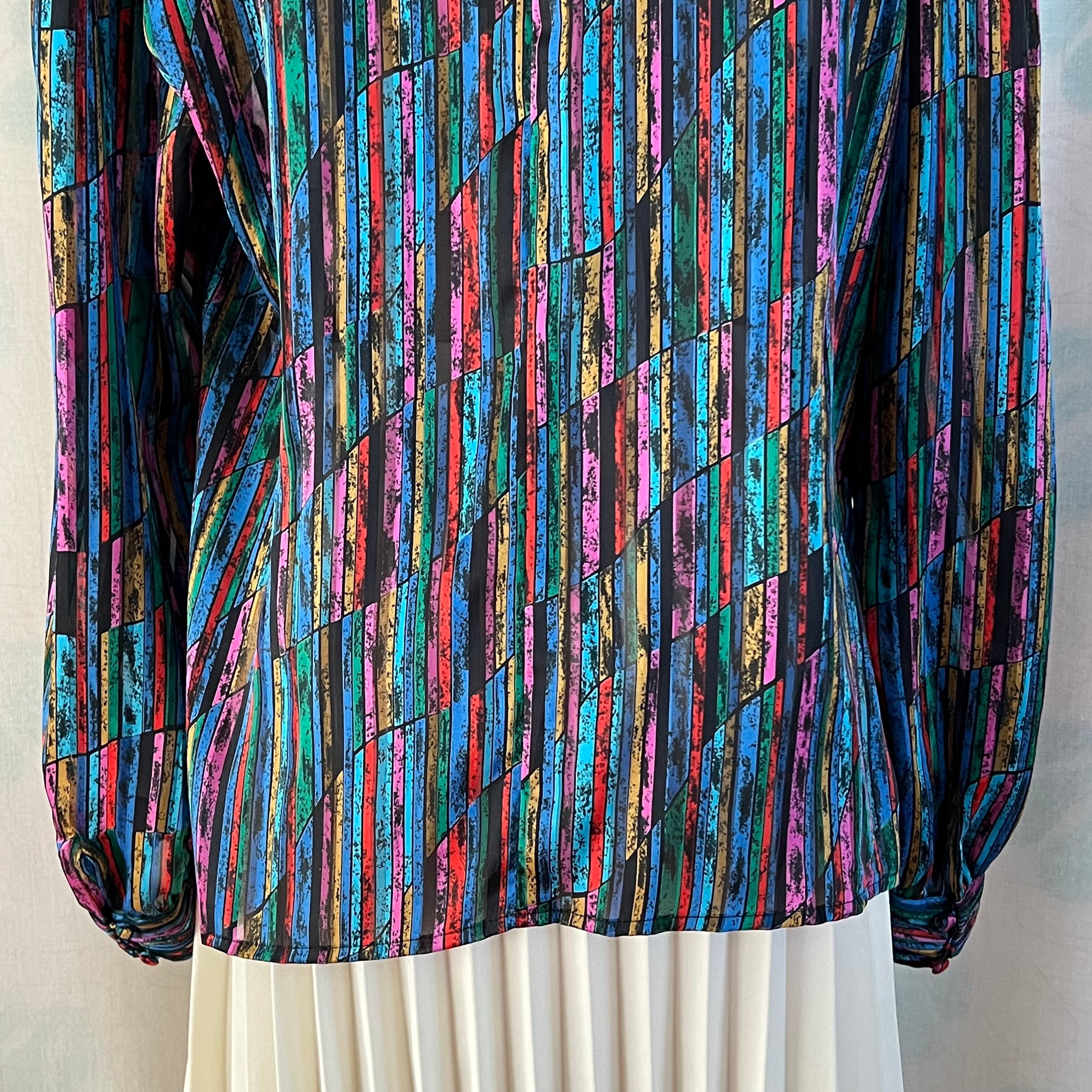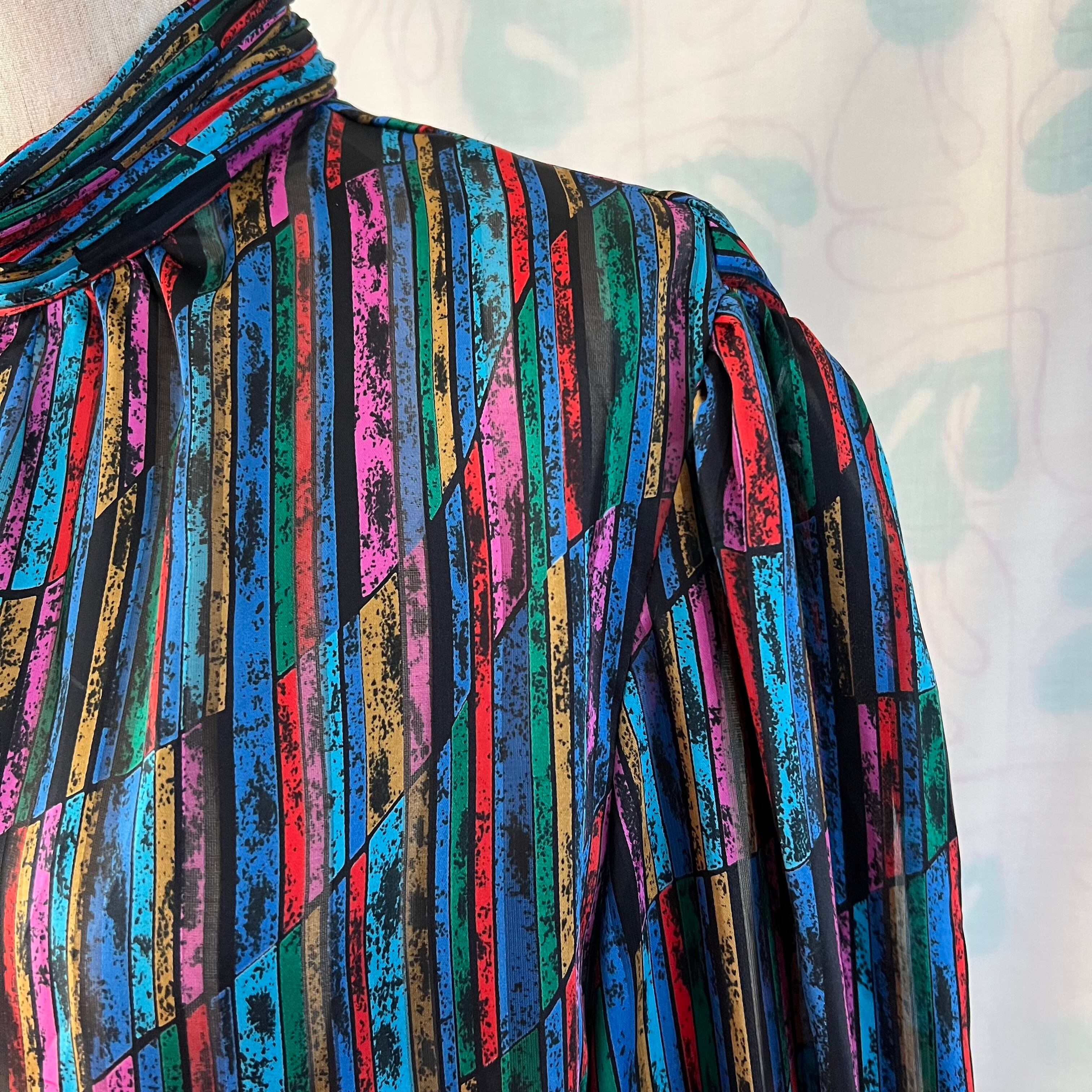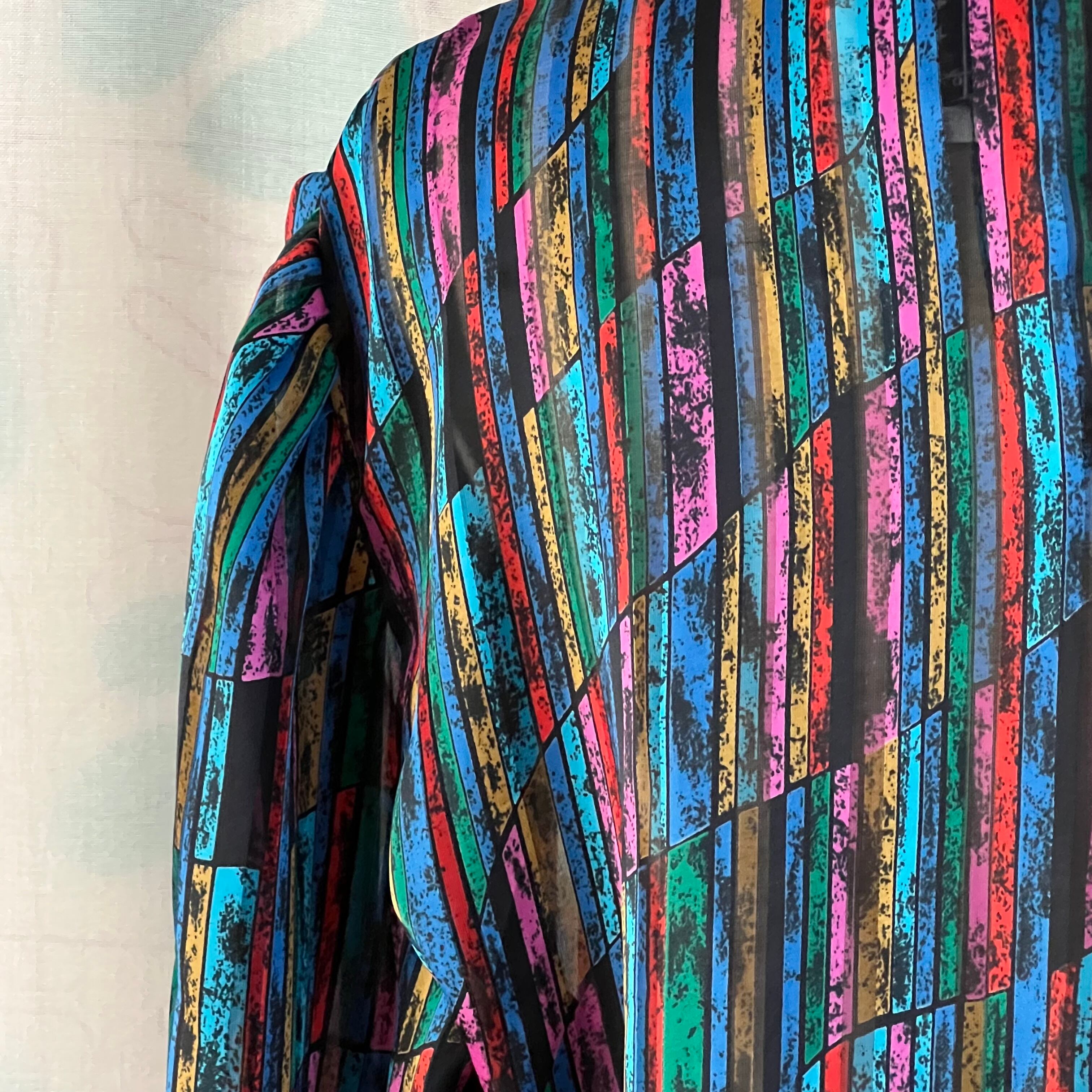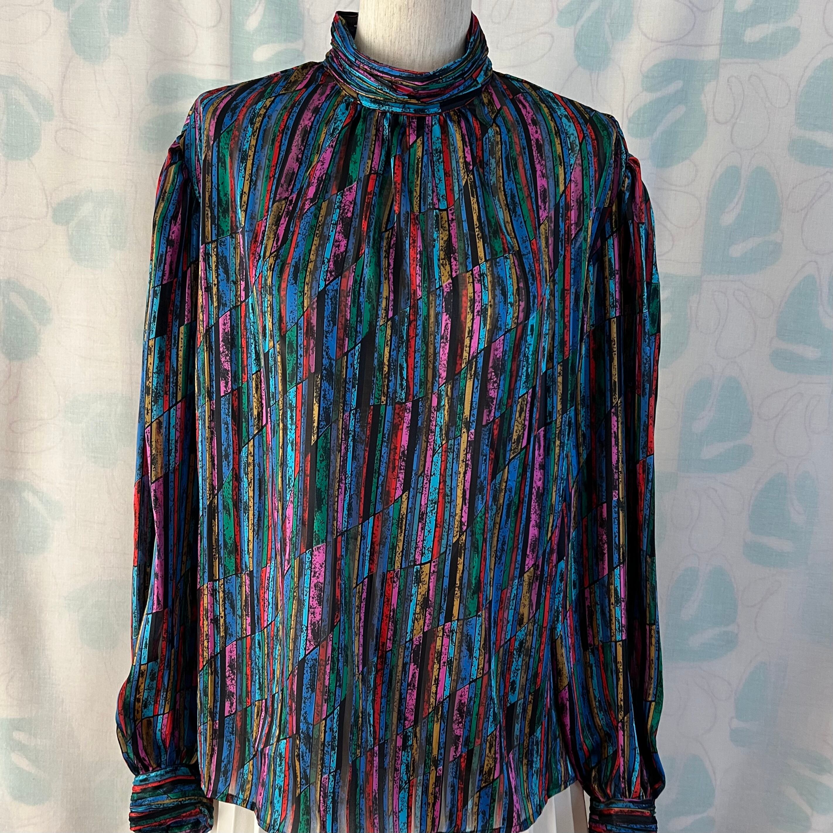 80's Mosaic pattern sheer blouse