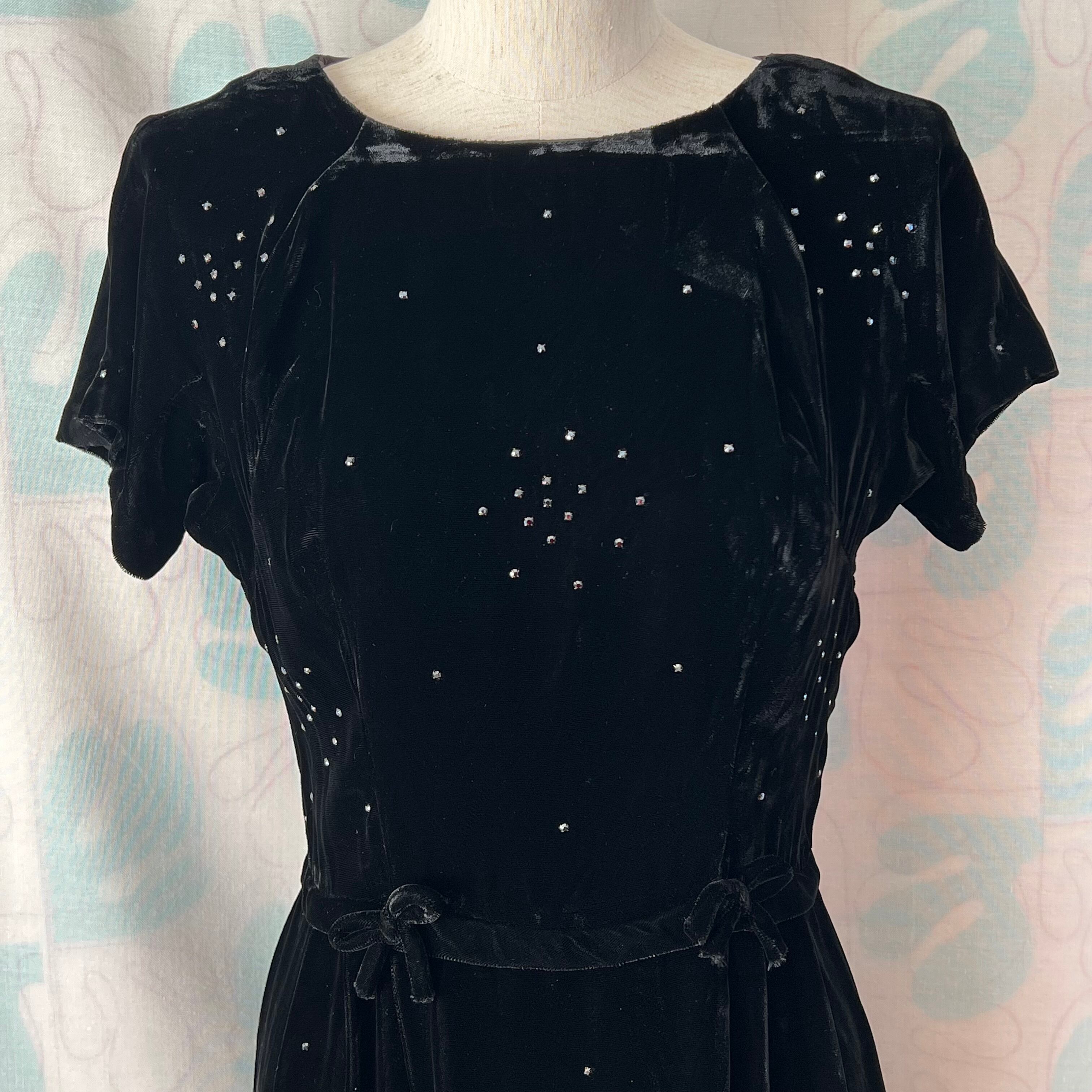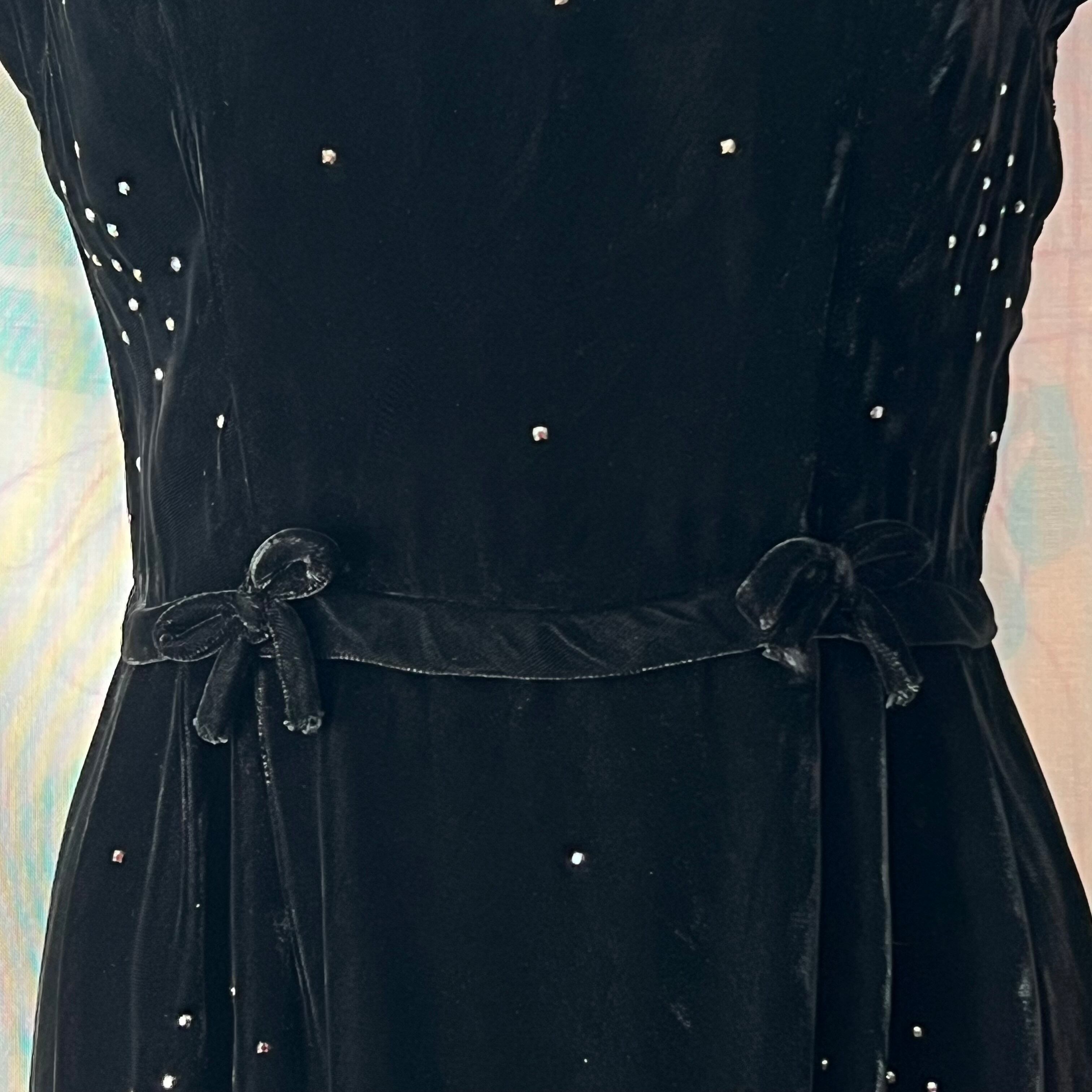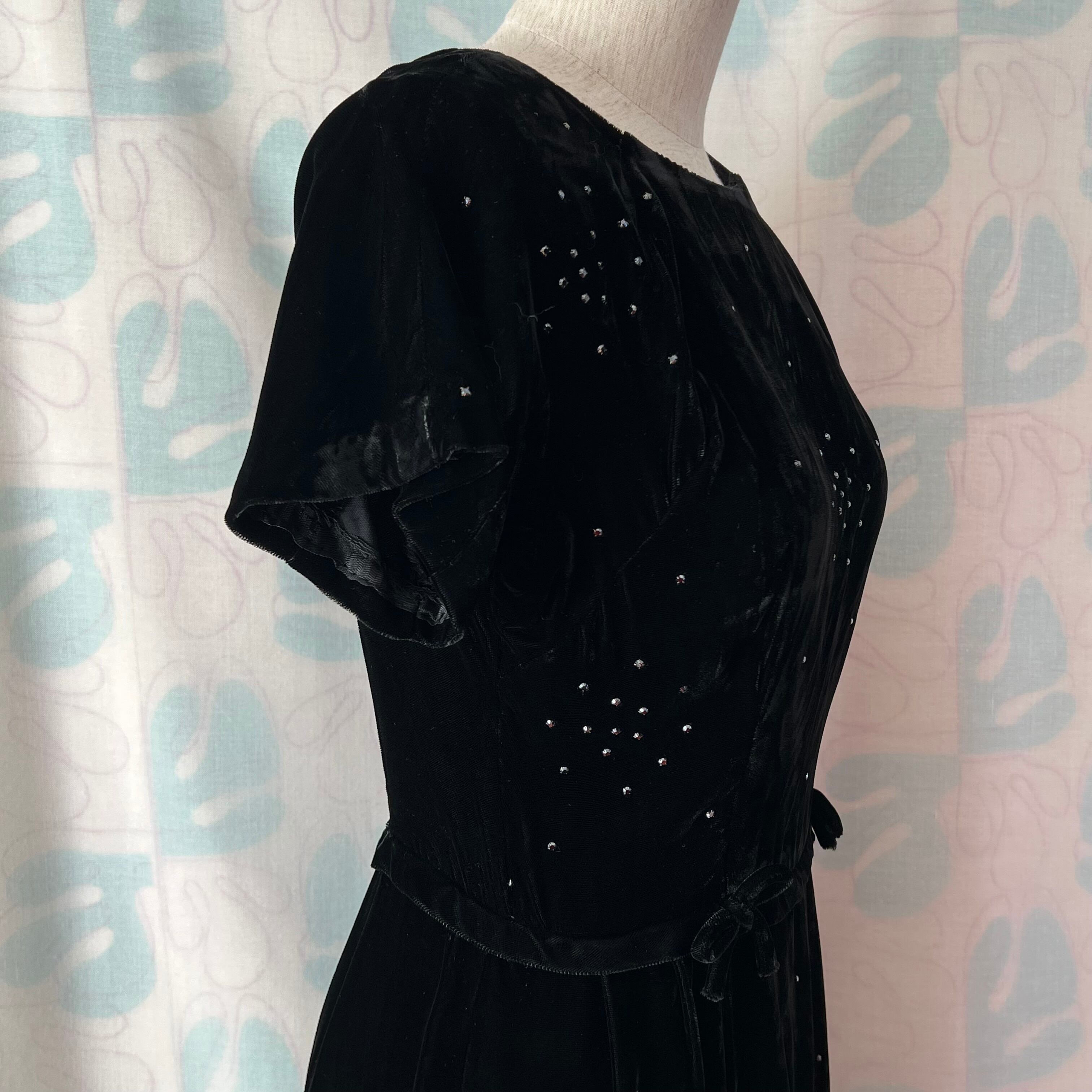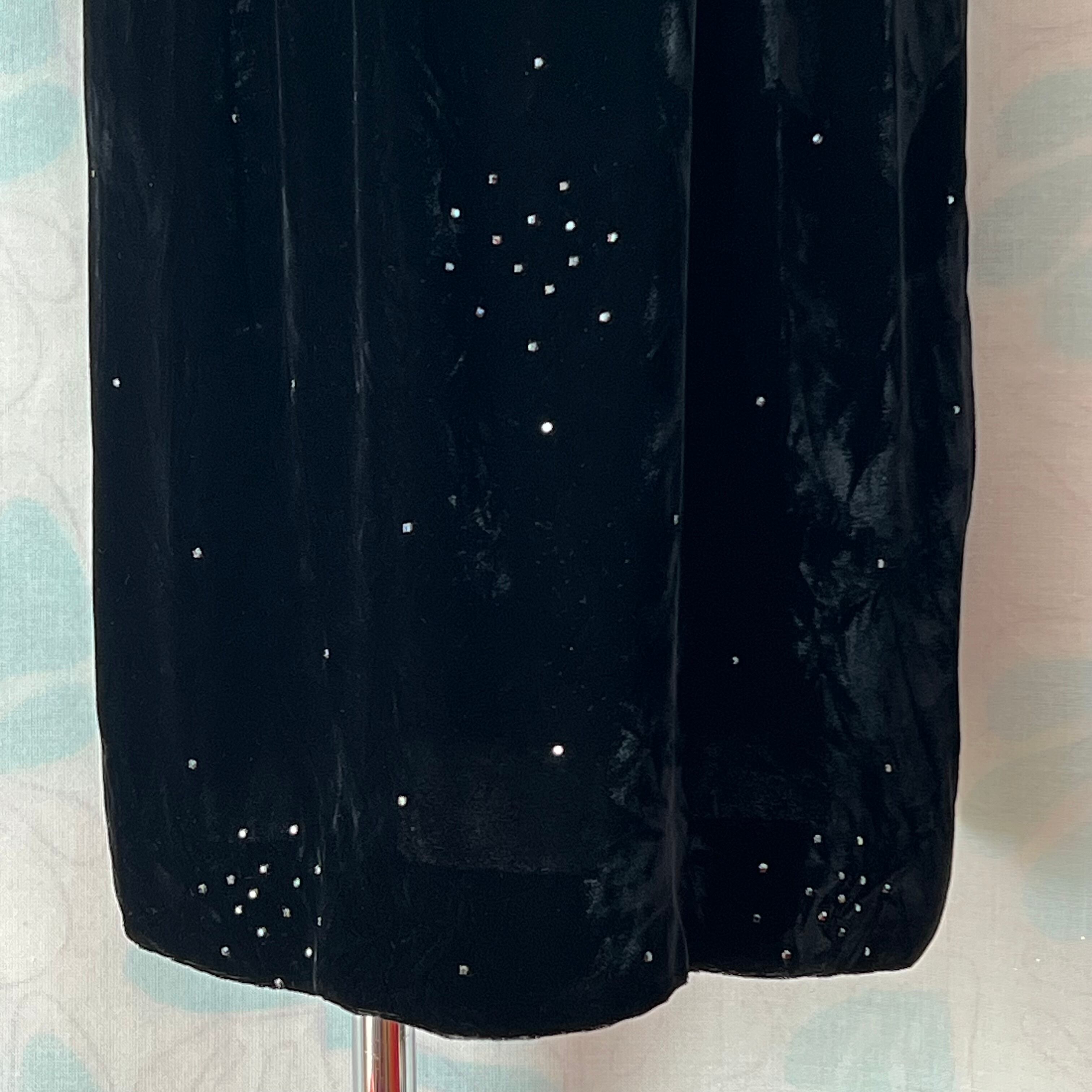 黒いベルベット素材のフロントにグレーのラインストーンがたくさん散りばめられた「聖夜」を思わせるドレスです。