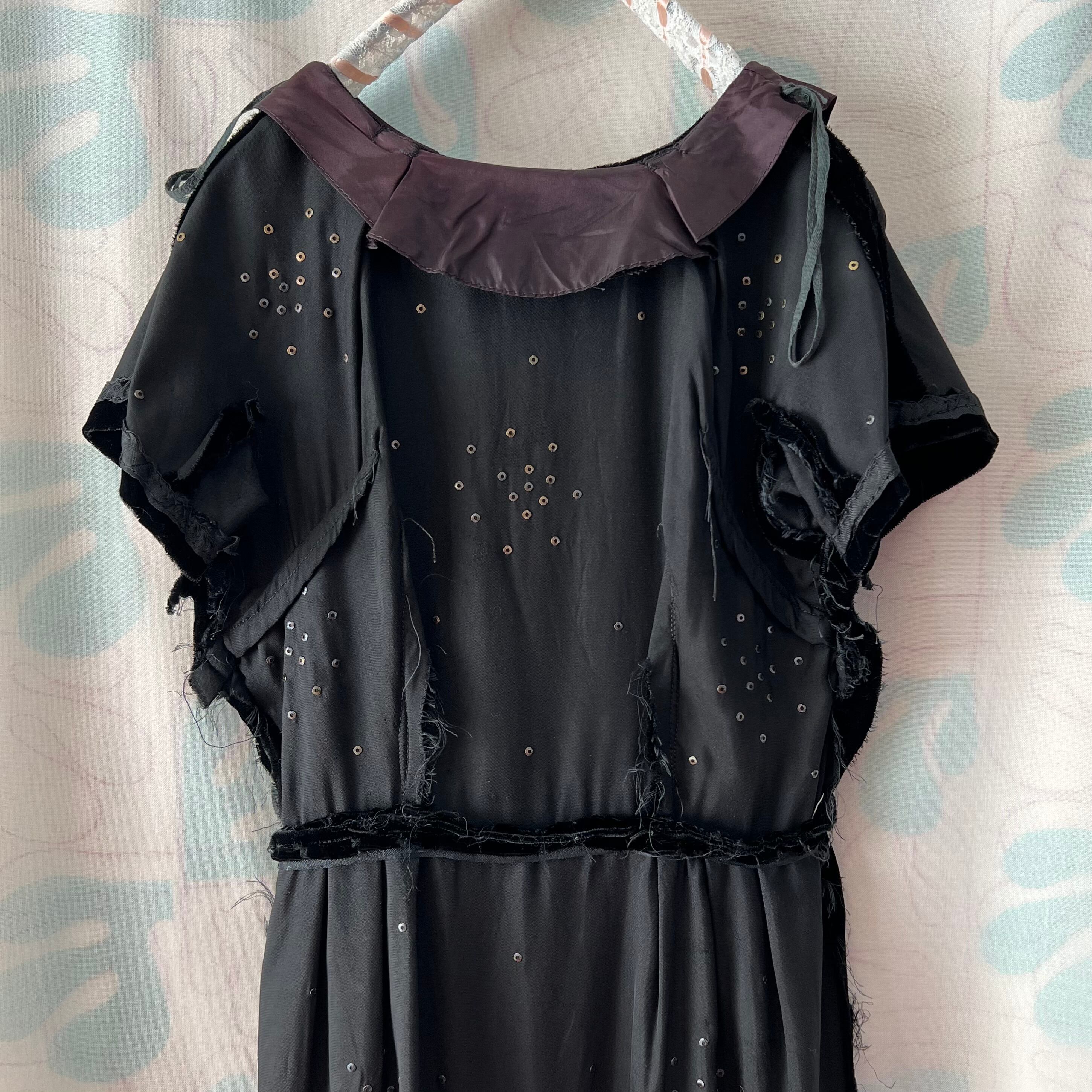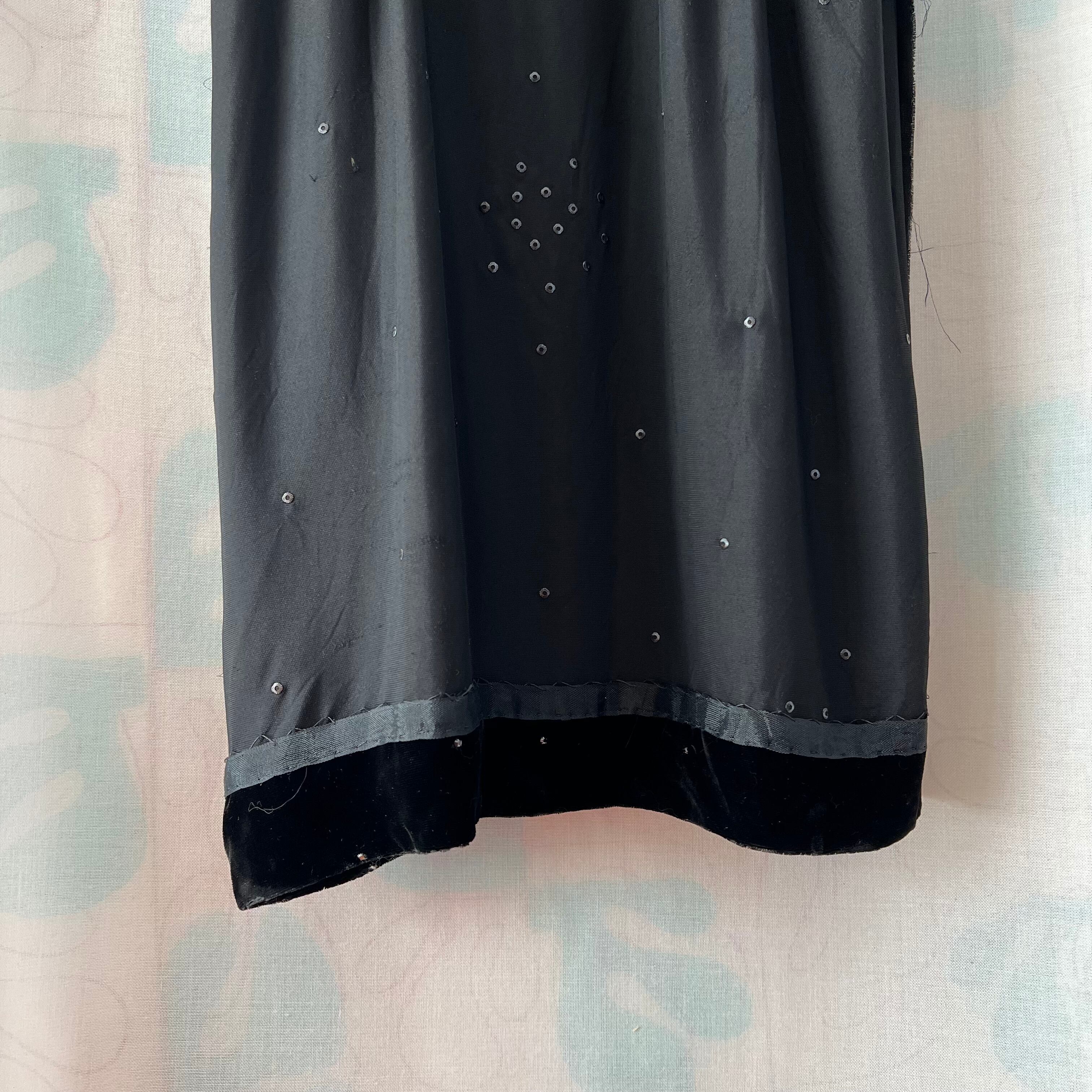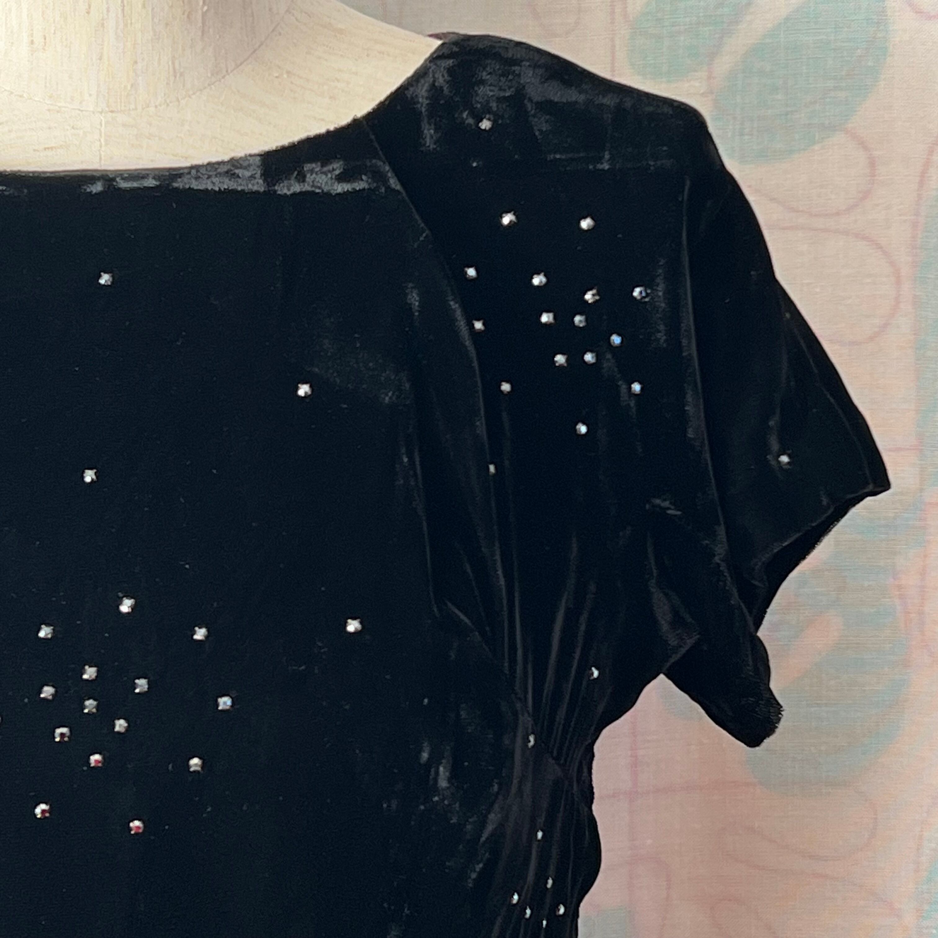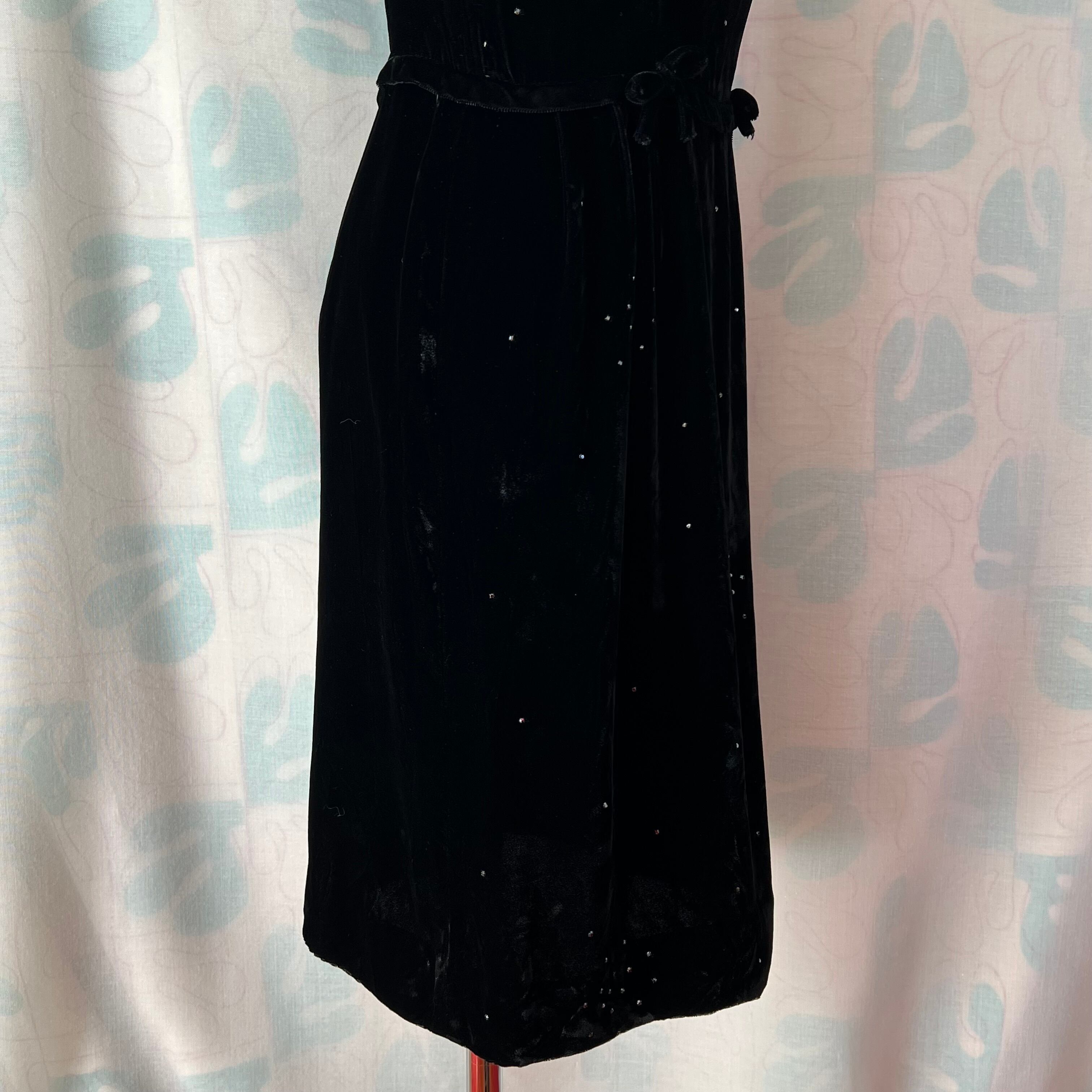 黒いベルベット素材のフロントにグレーのラインストーンがたくさん散りばめられた「聖夜」を思わせるドレスです。