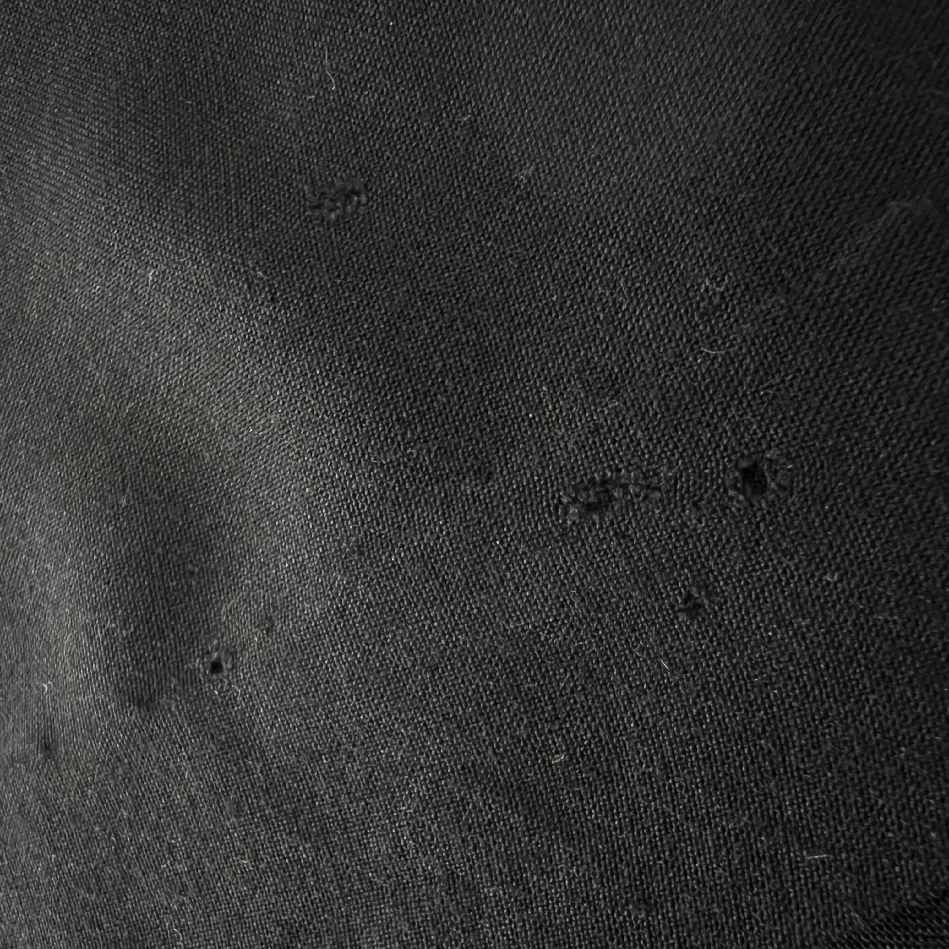 {コンディション}ピンホール多数ありましたが、裾の折り重なっている部分以外は補修済みです。補修画像を掲載しきれずフロントのみですがバックにもあります。左胸に引っ掻き、その下にスレがあります。ラスト5枚の画像でご確認下さい。
