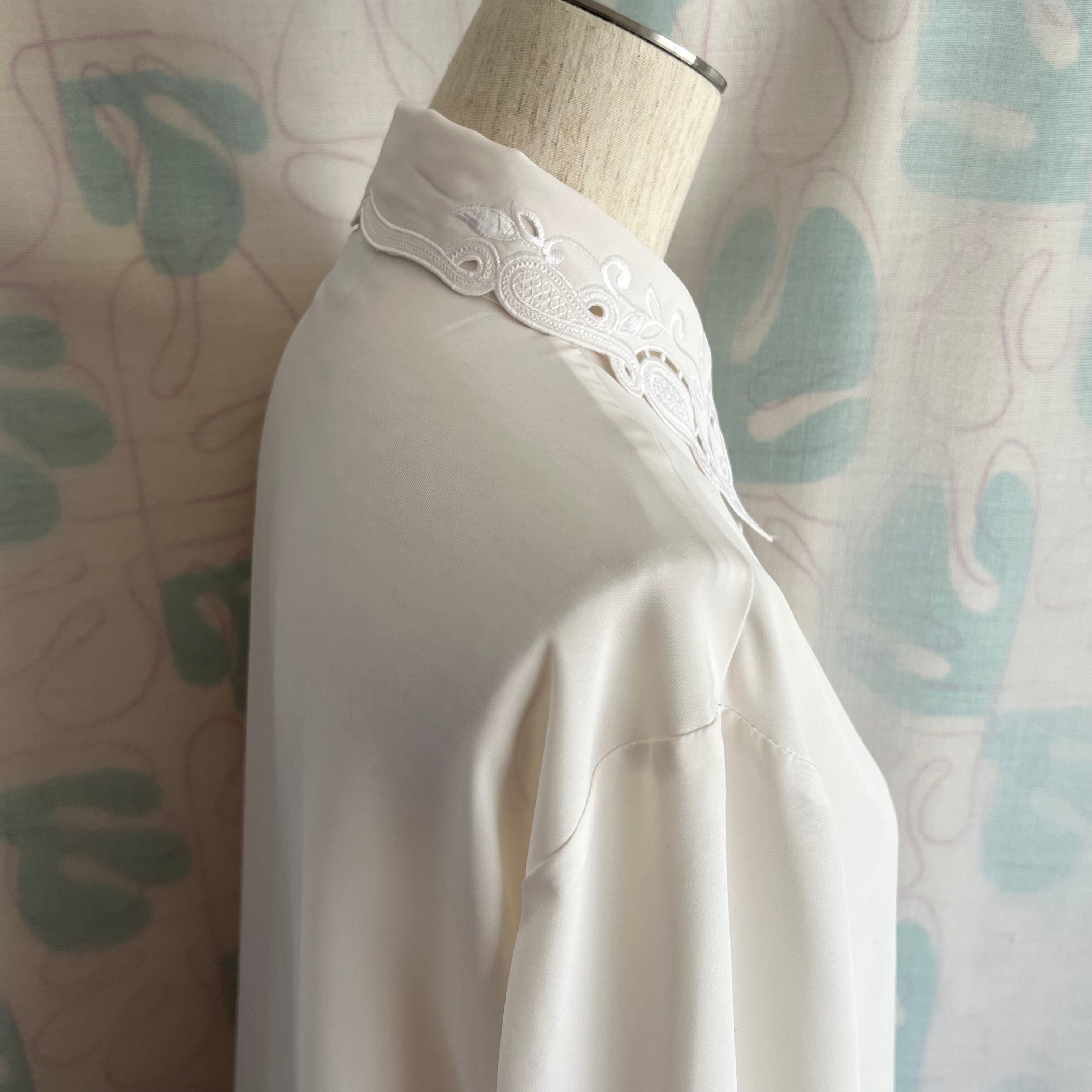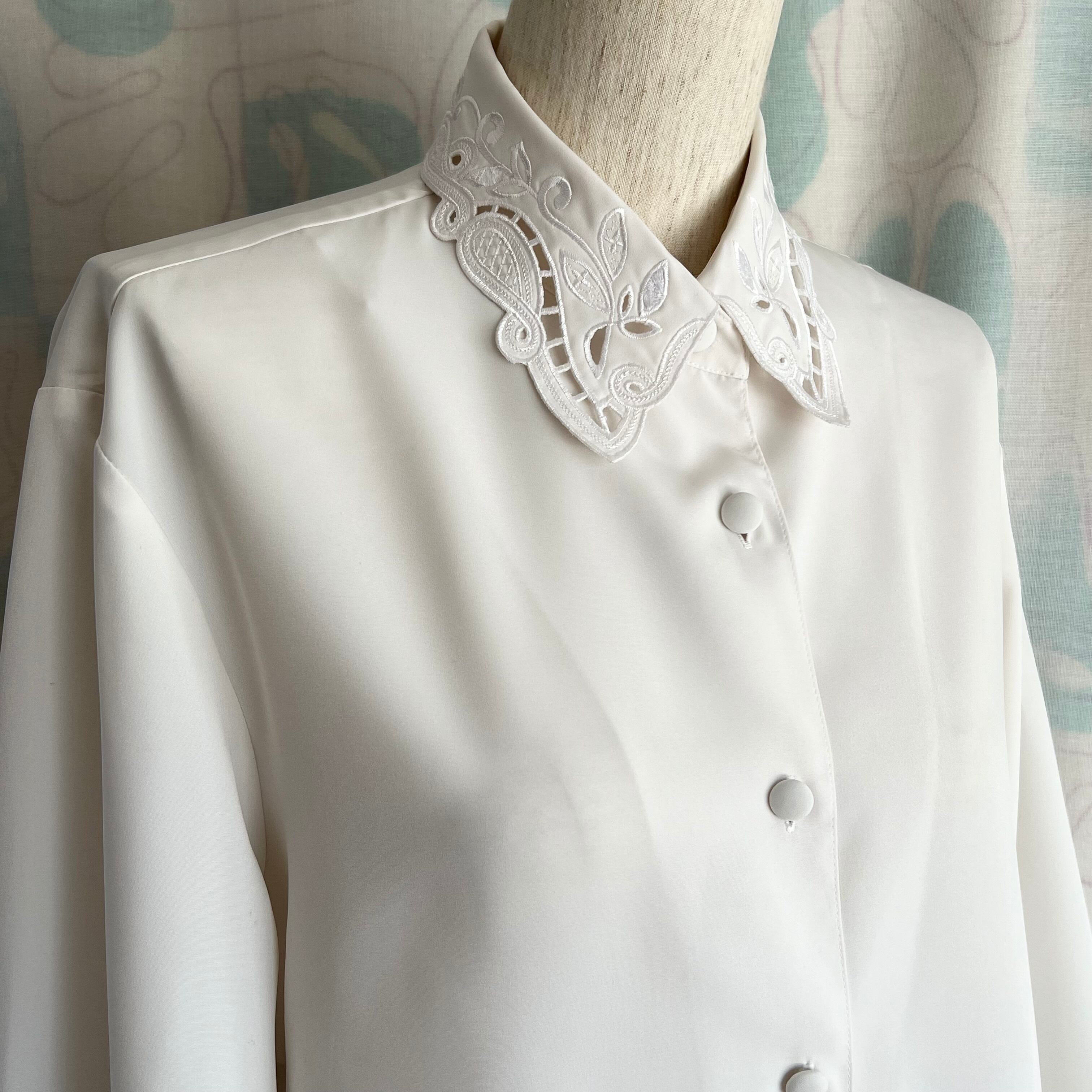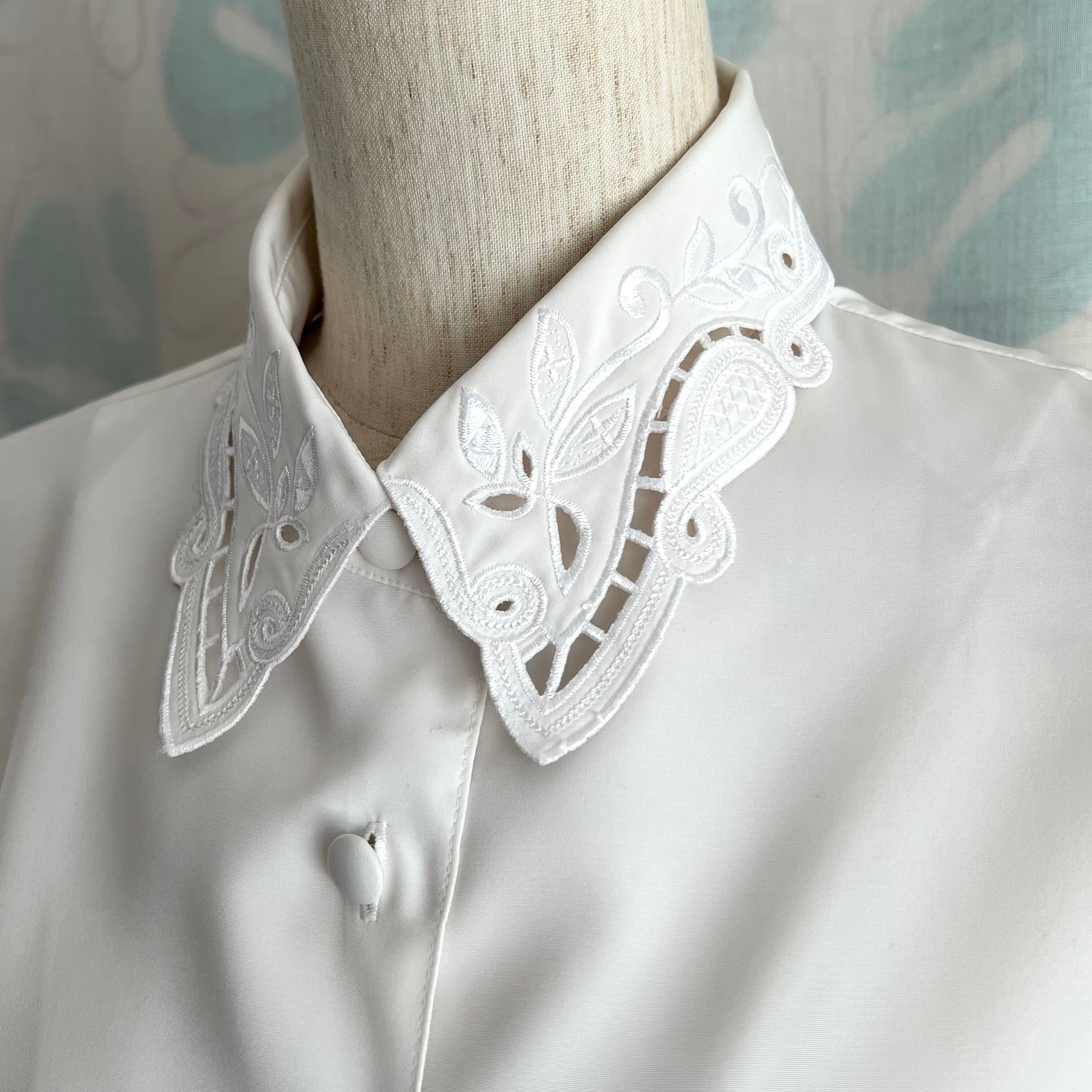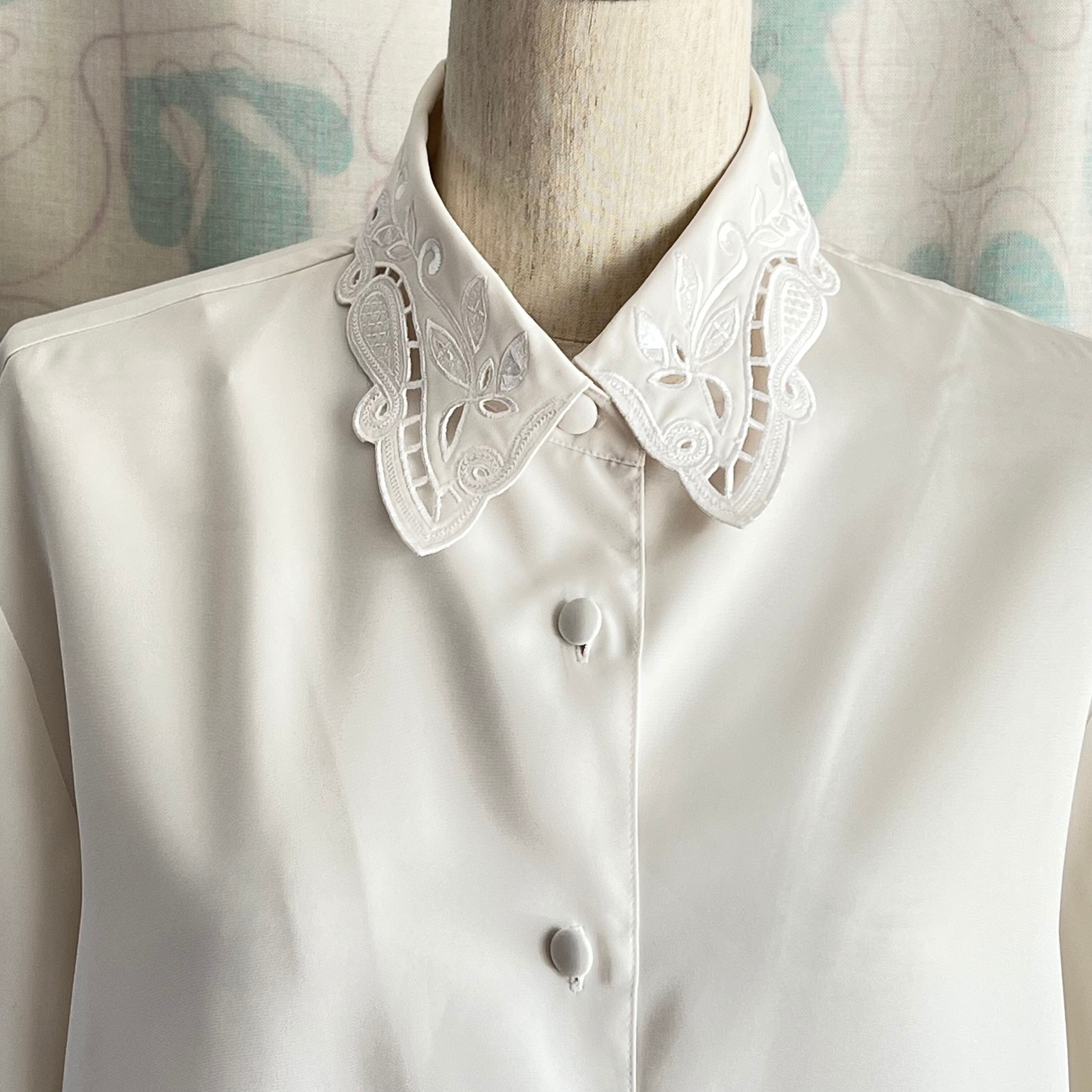 綺麗なカットワークレースの襟が素敵なブラウスです。
