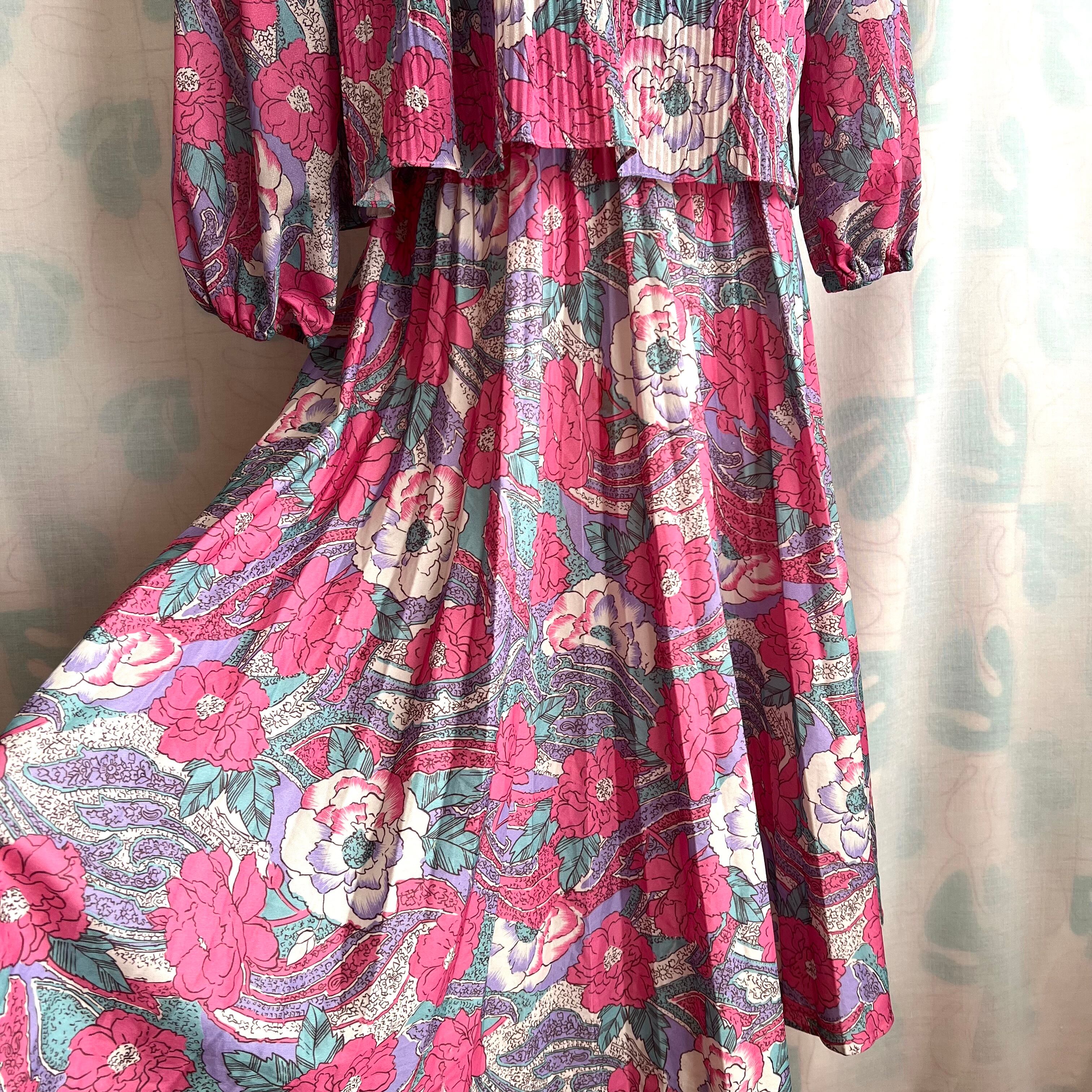ヴィンテージ セットアップ風 花柄プリーツワンピース。
