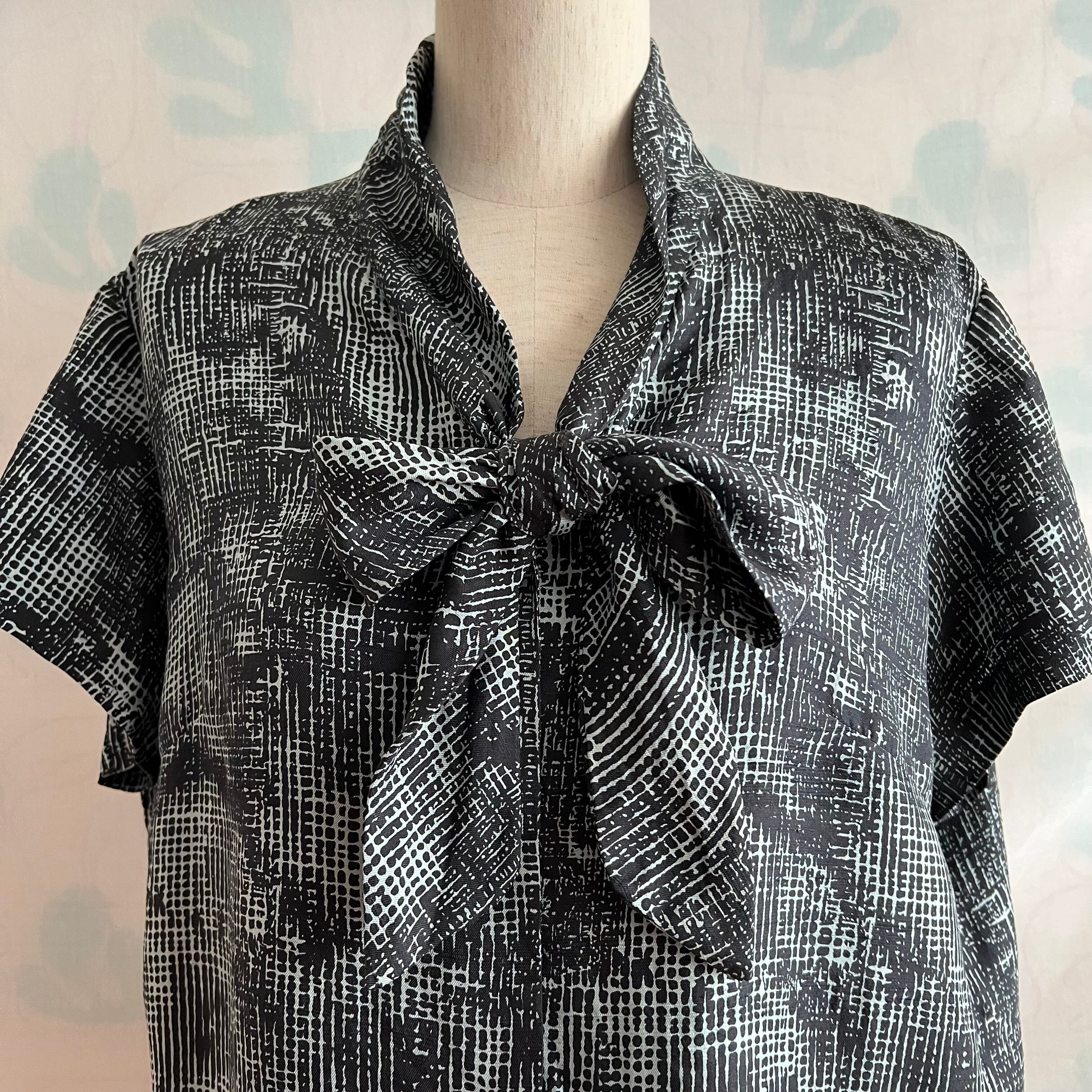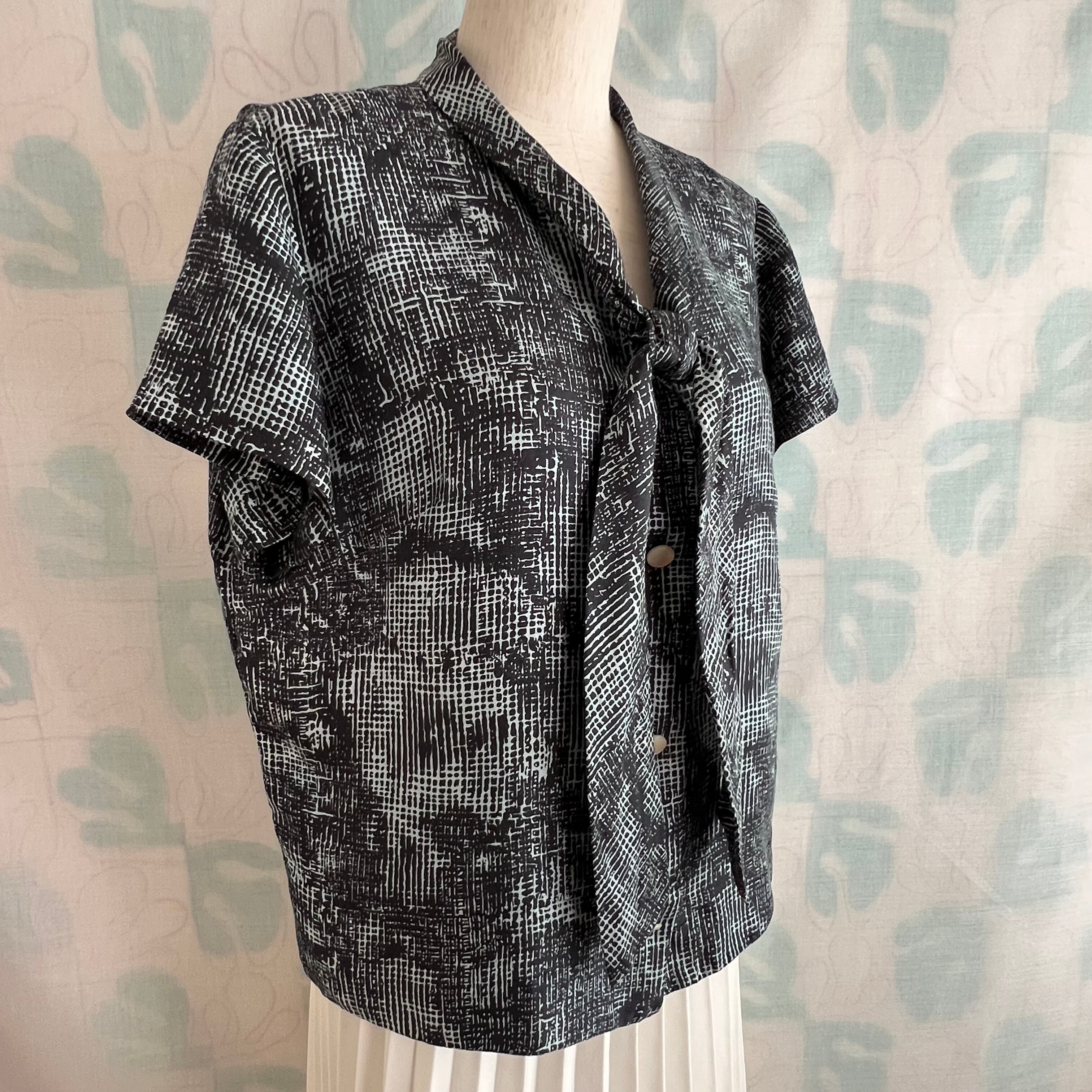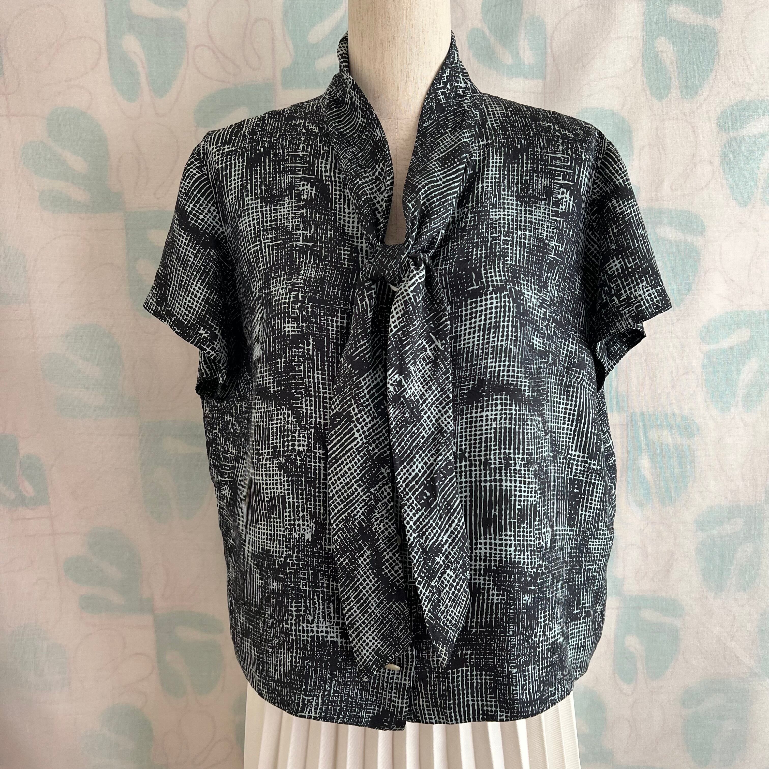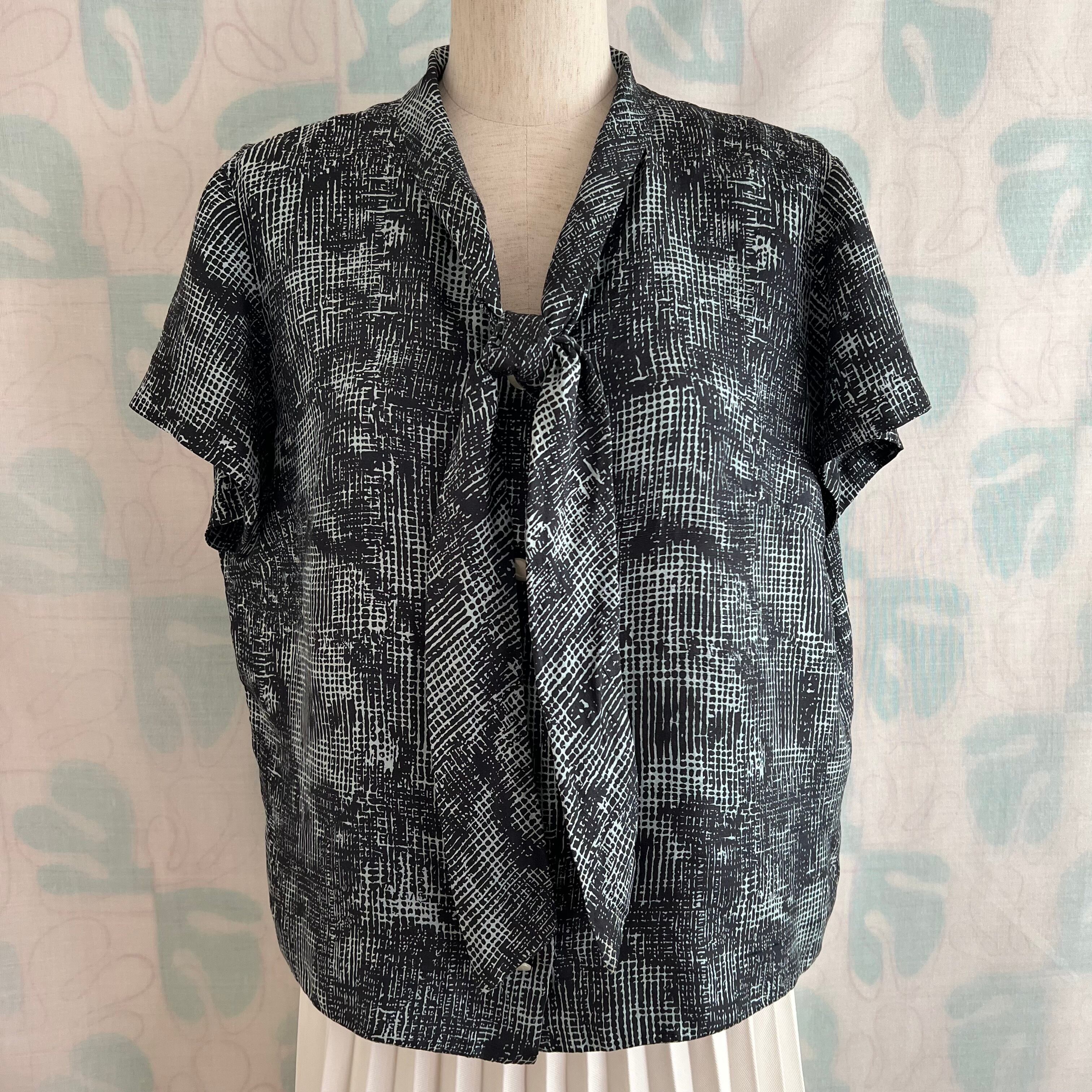 ヴィンテージ モザイクプリントボウタイブラウス。