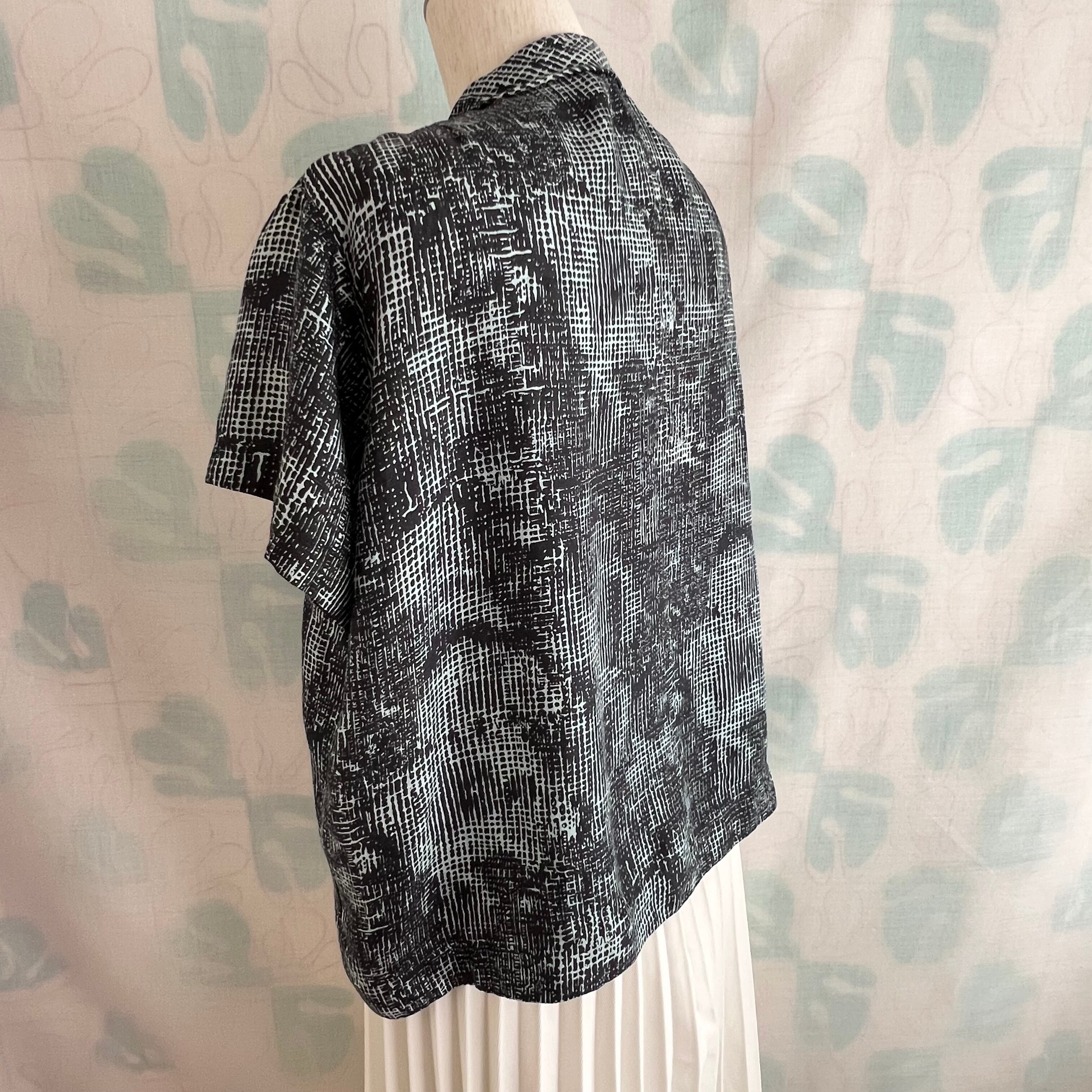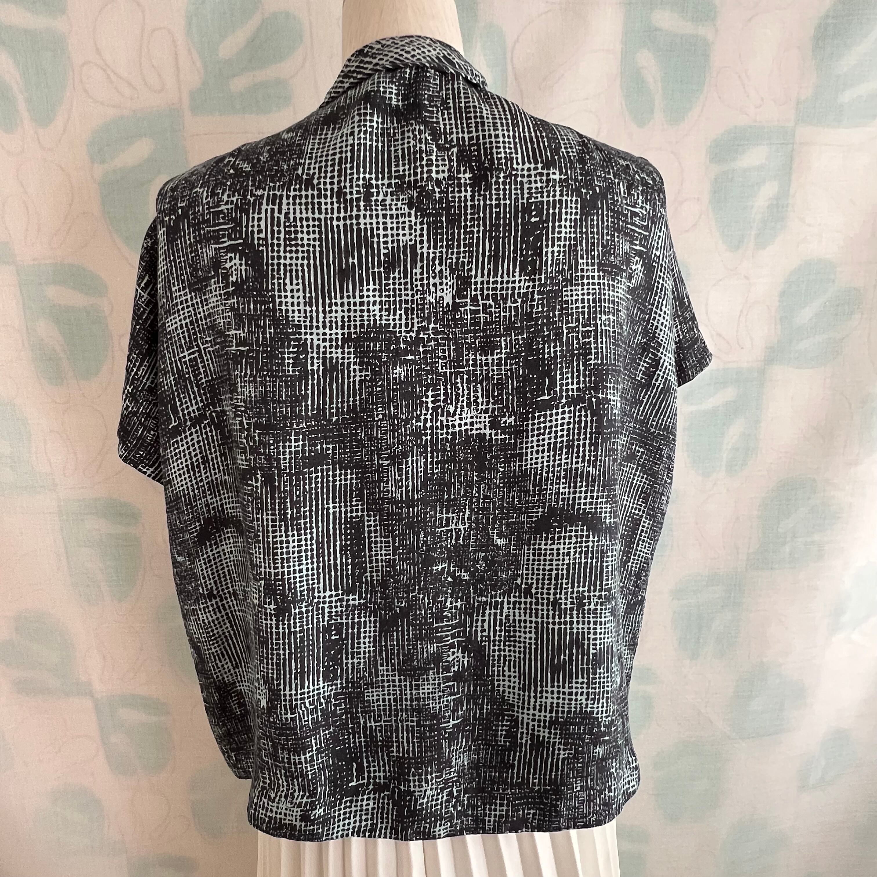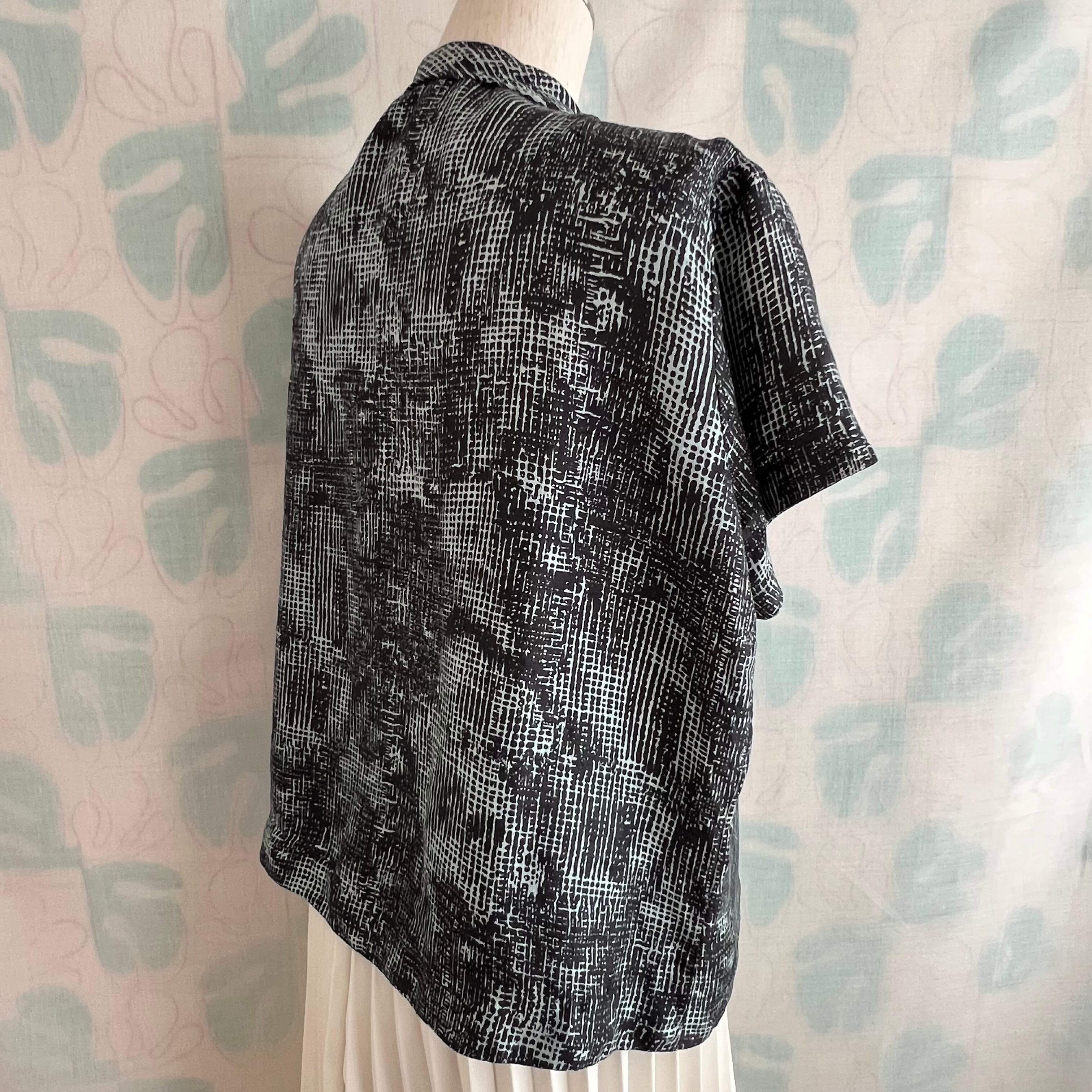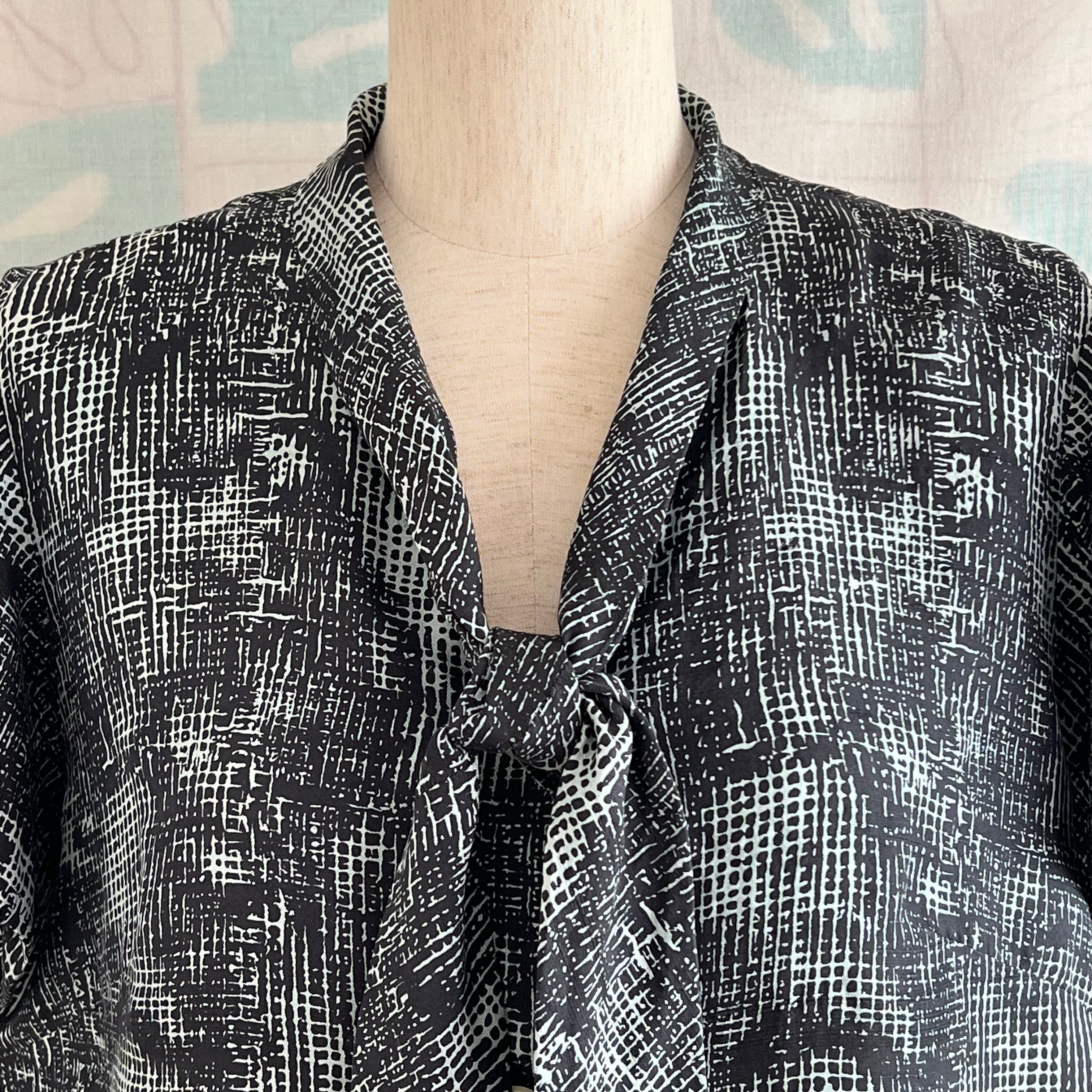 ヴィンテージ モザイクプリントボウタイブラウス。