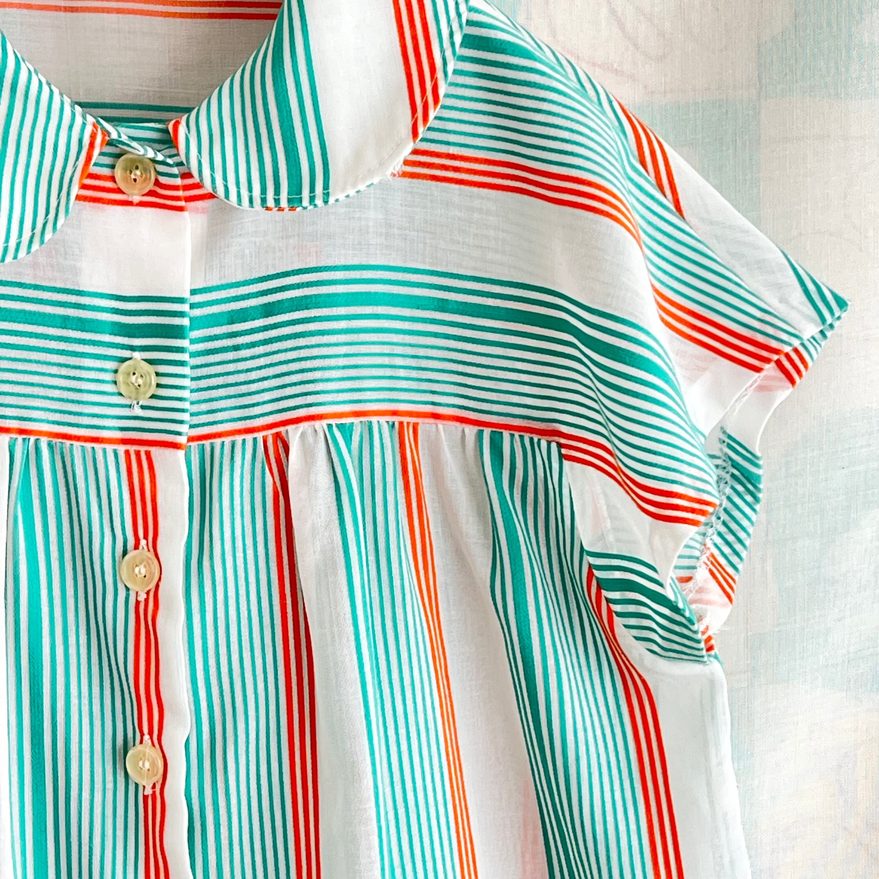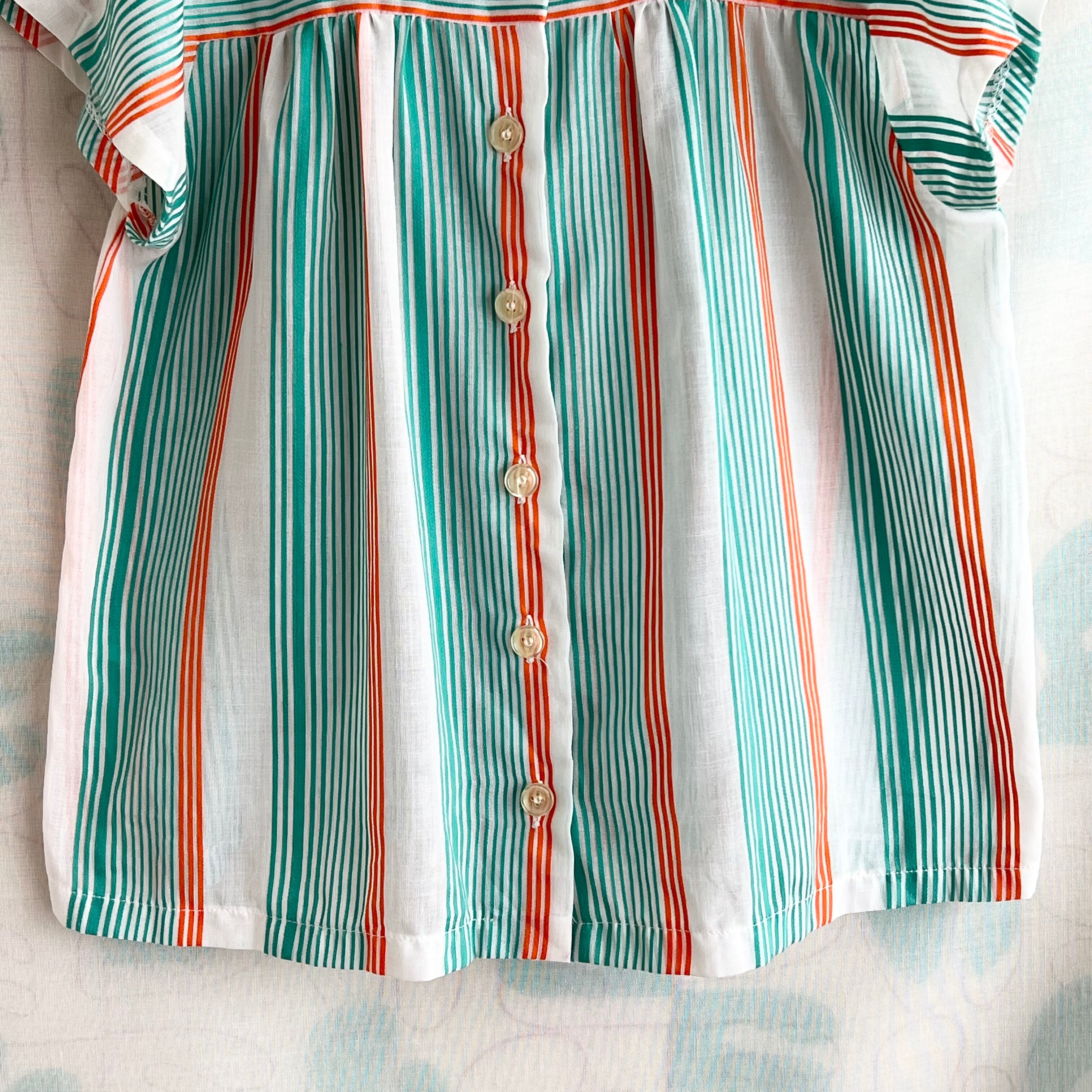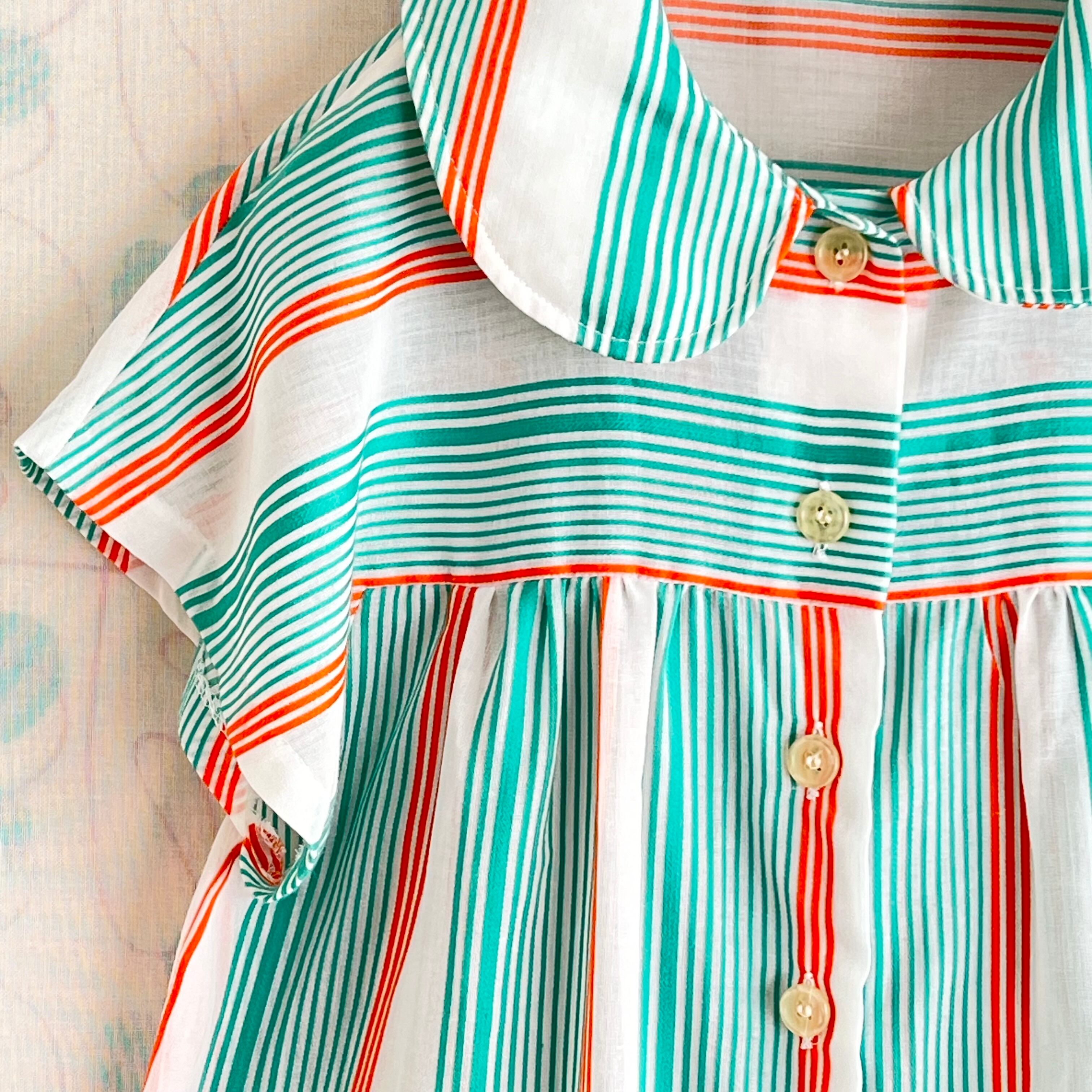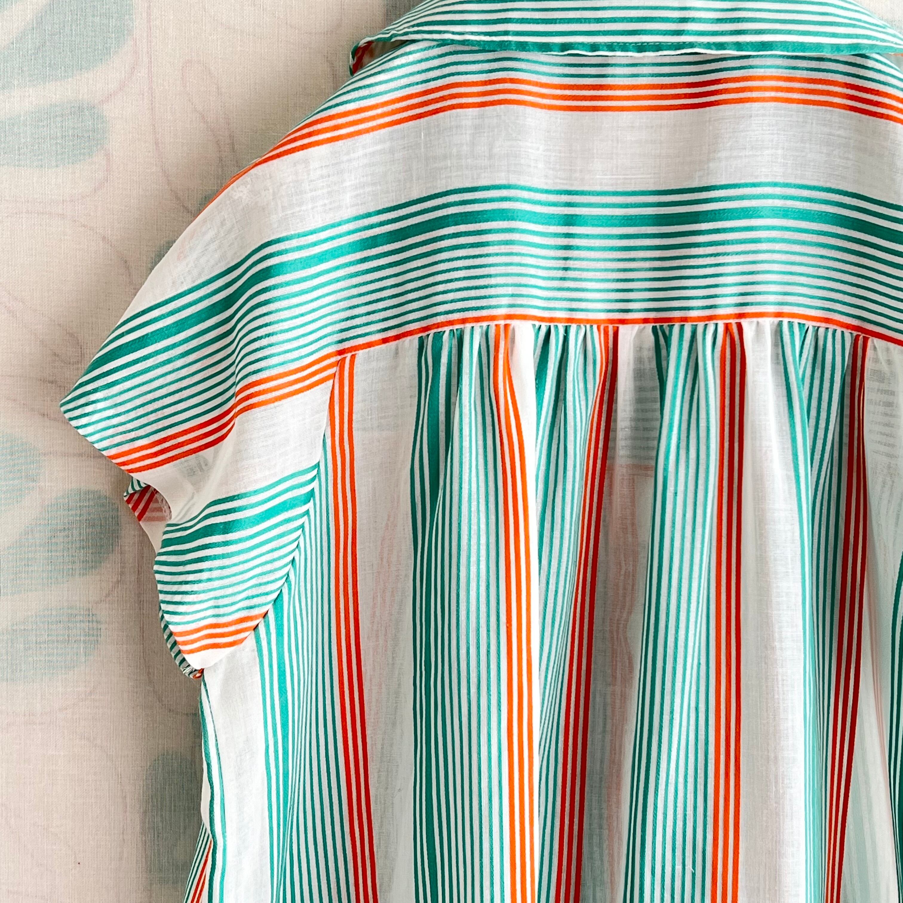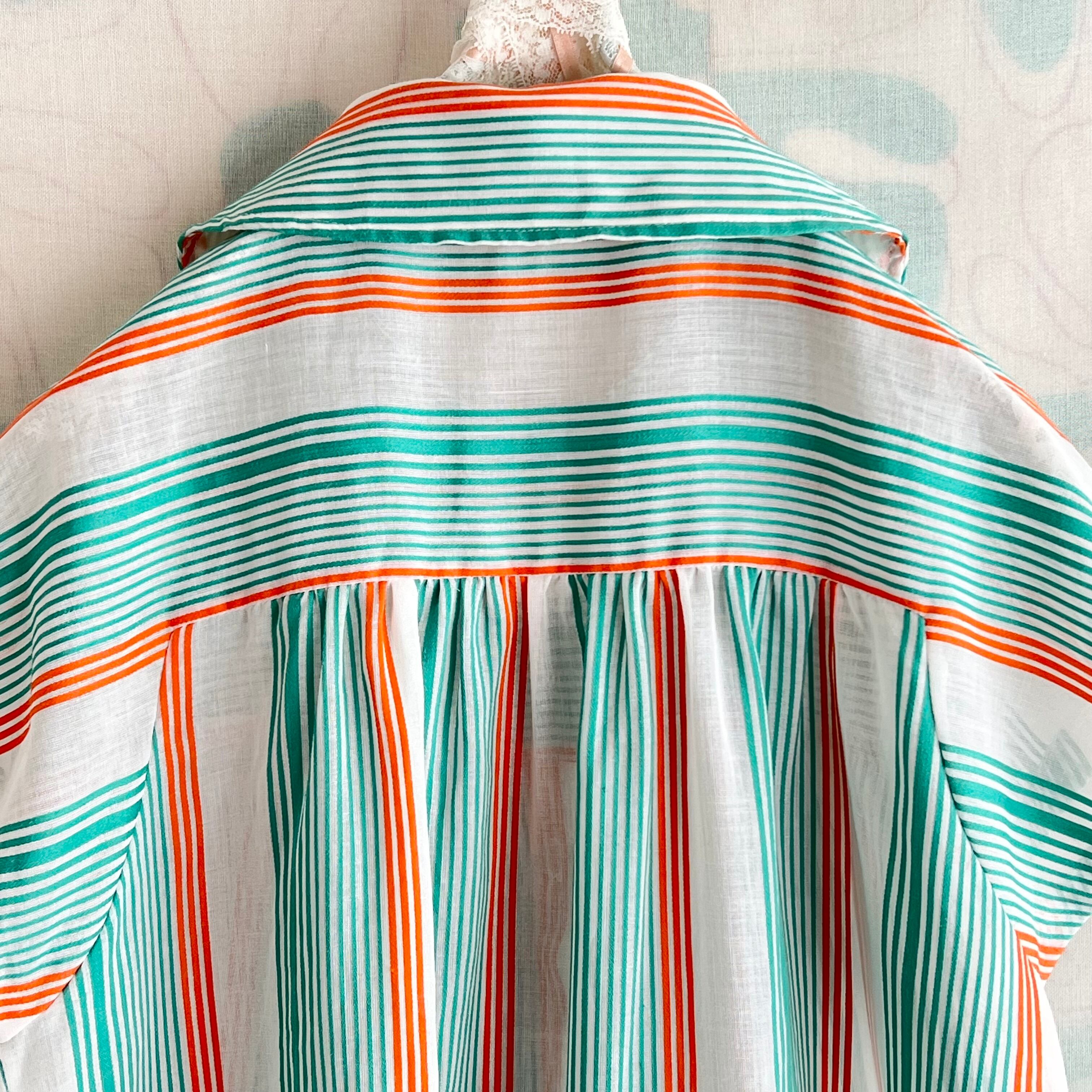 80's 2色ボーダー×ストライプ フレンチスリーブ シアーブラウス。