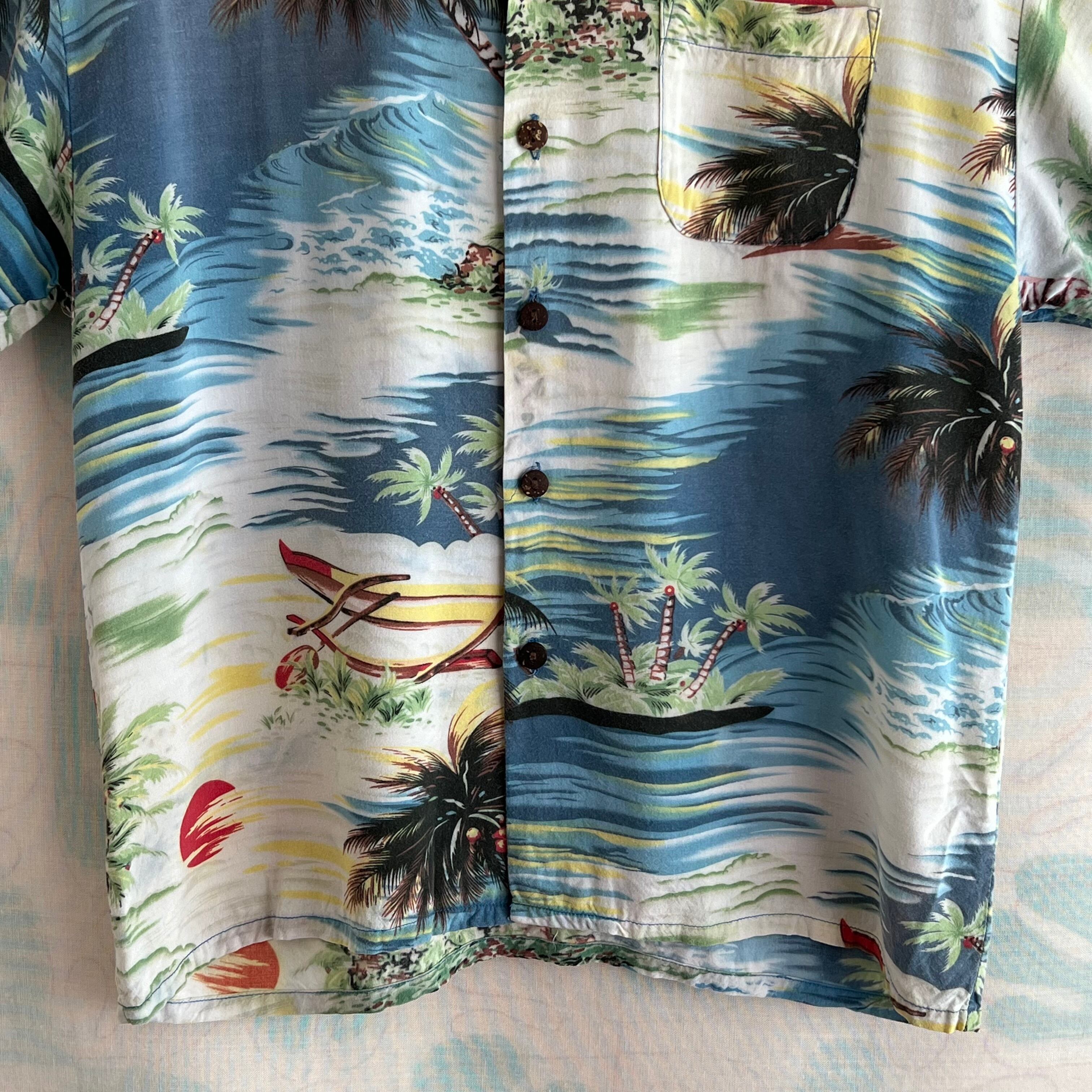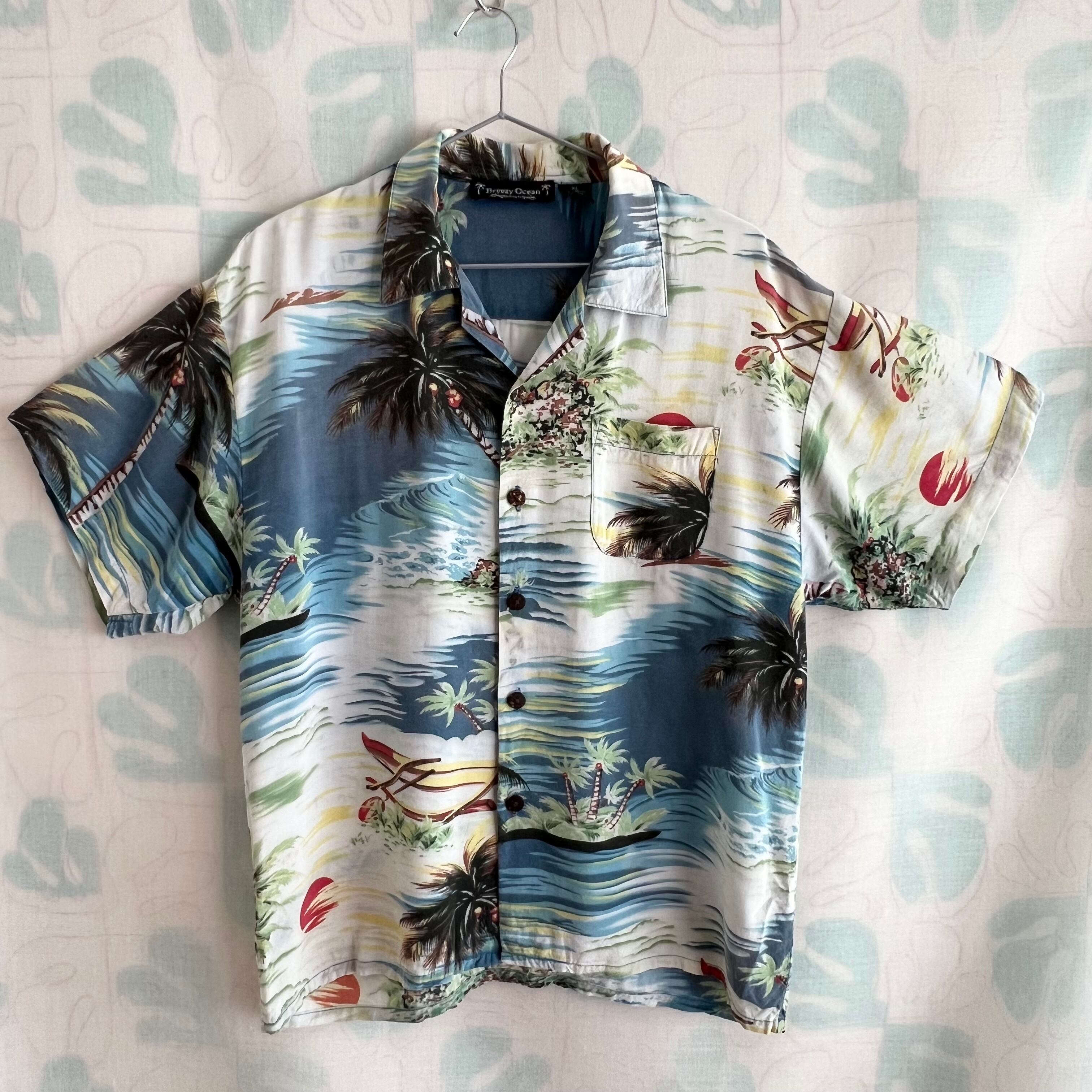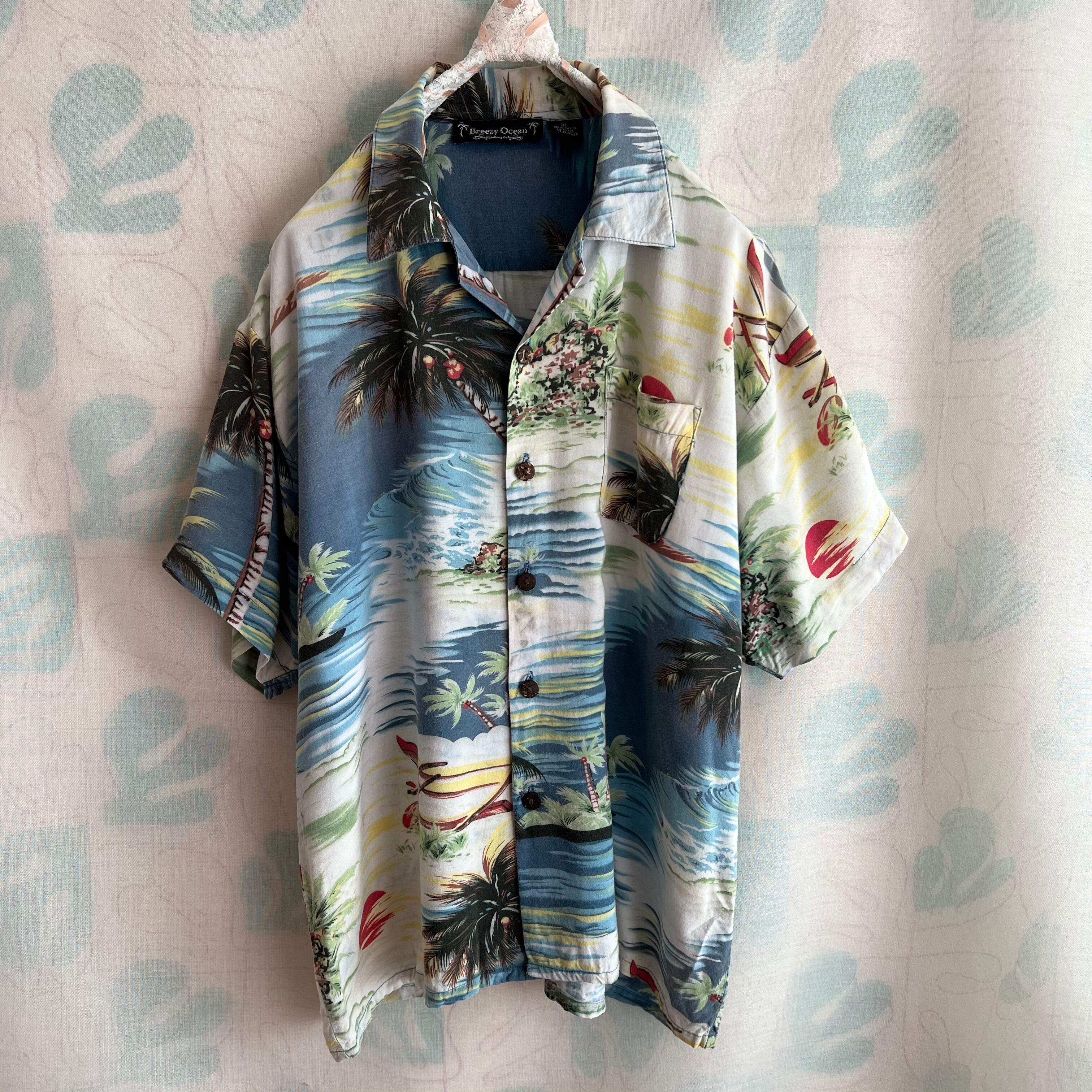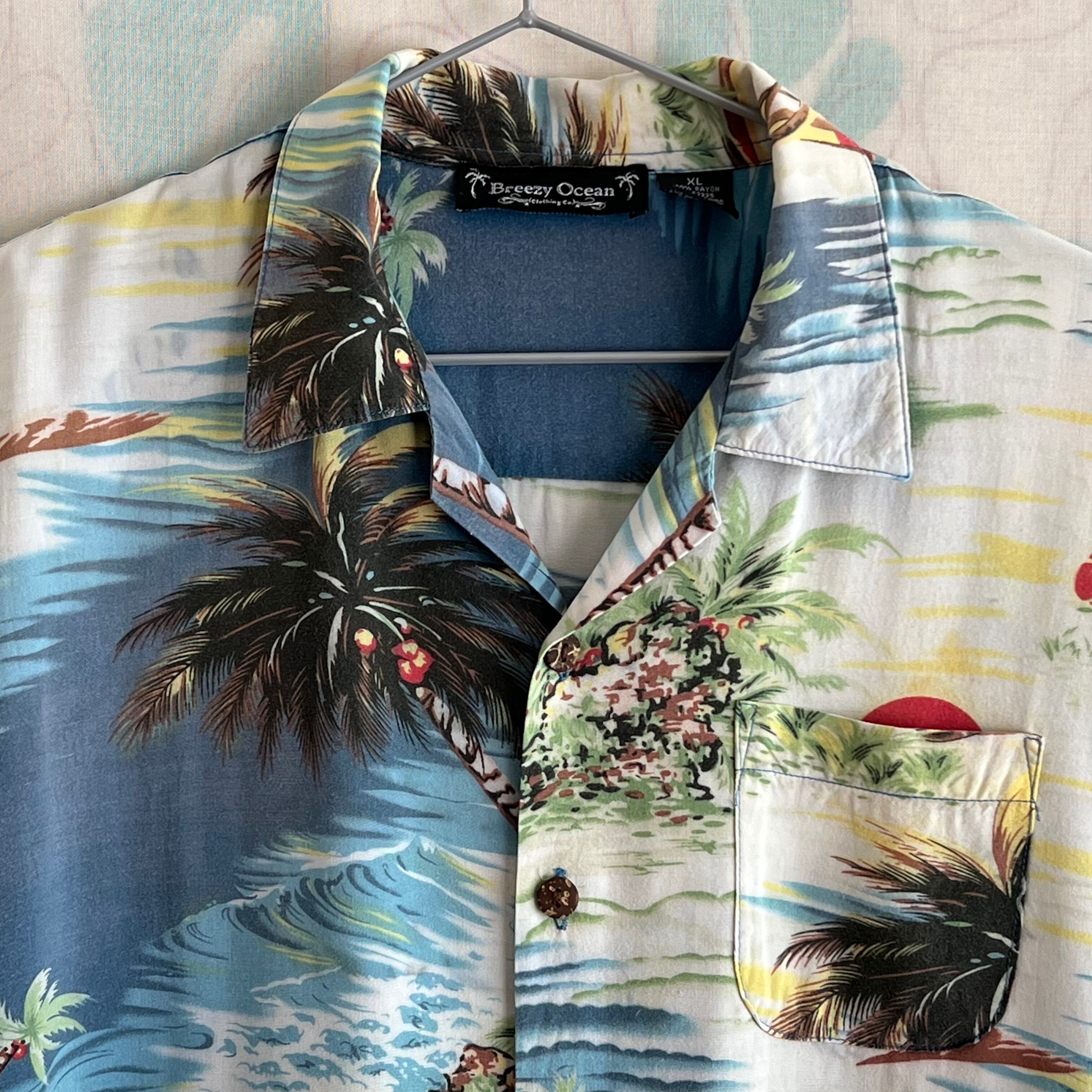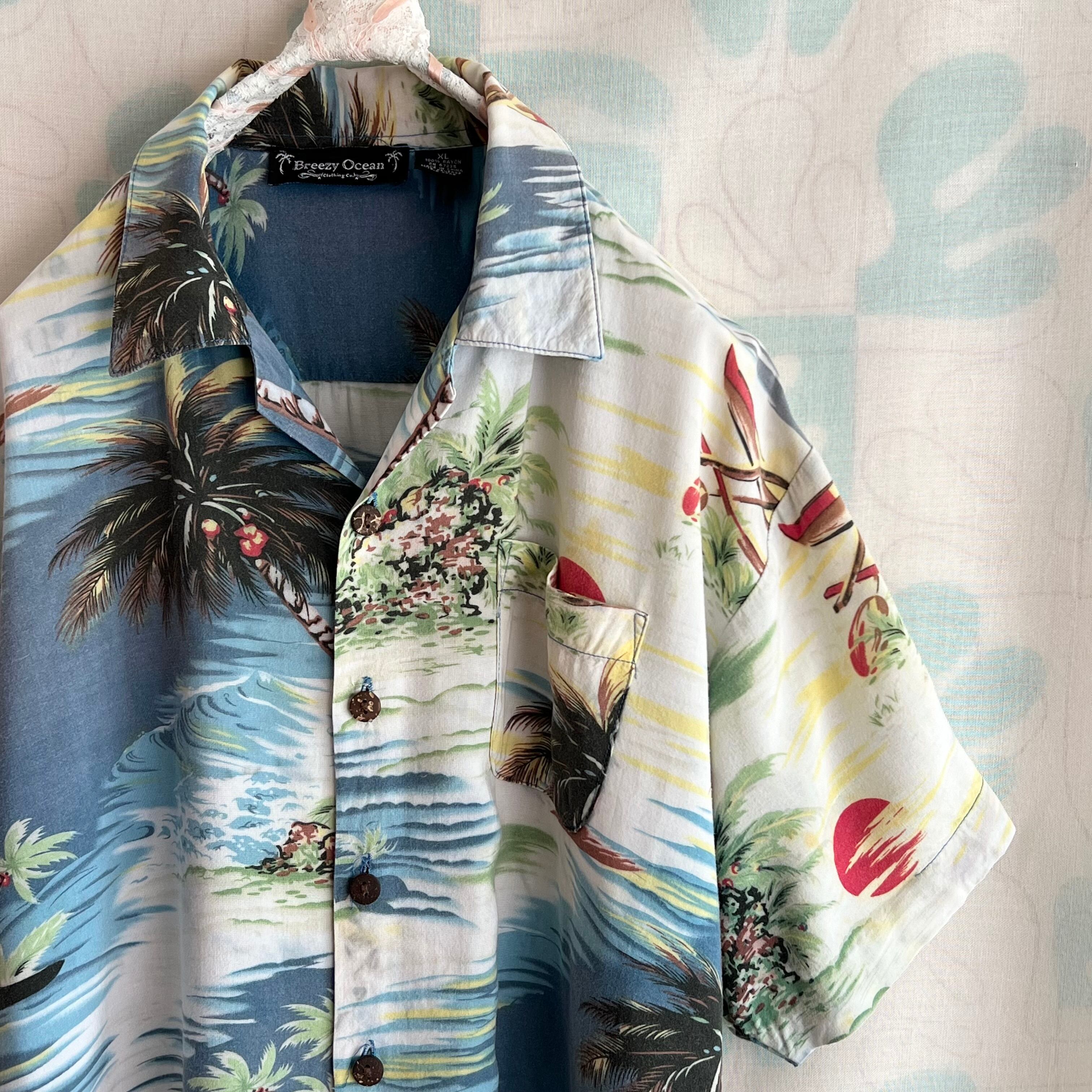 used 「Breezy Ocean」メンズハワイアンシャツ。