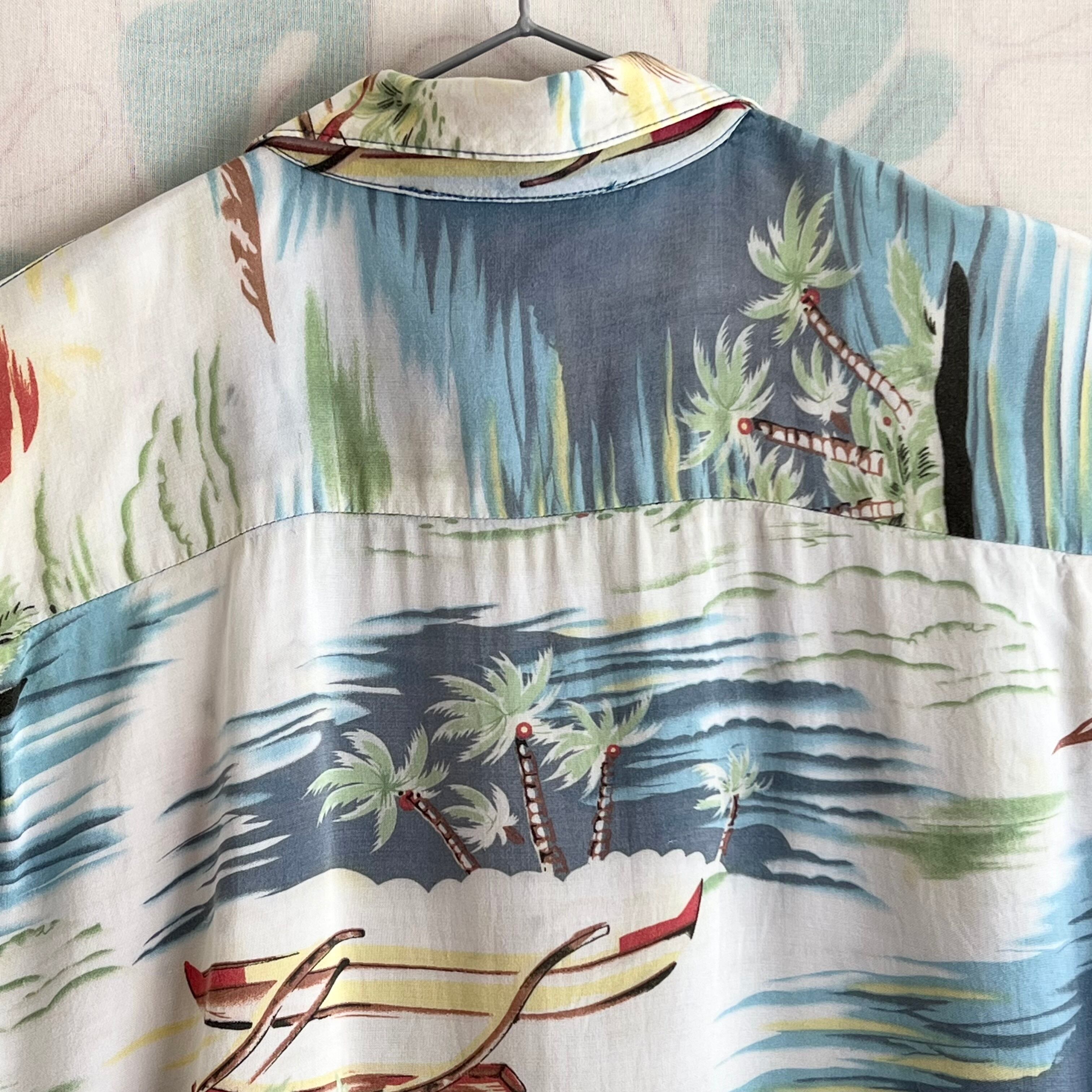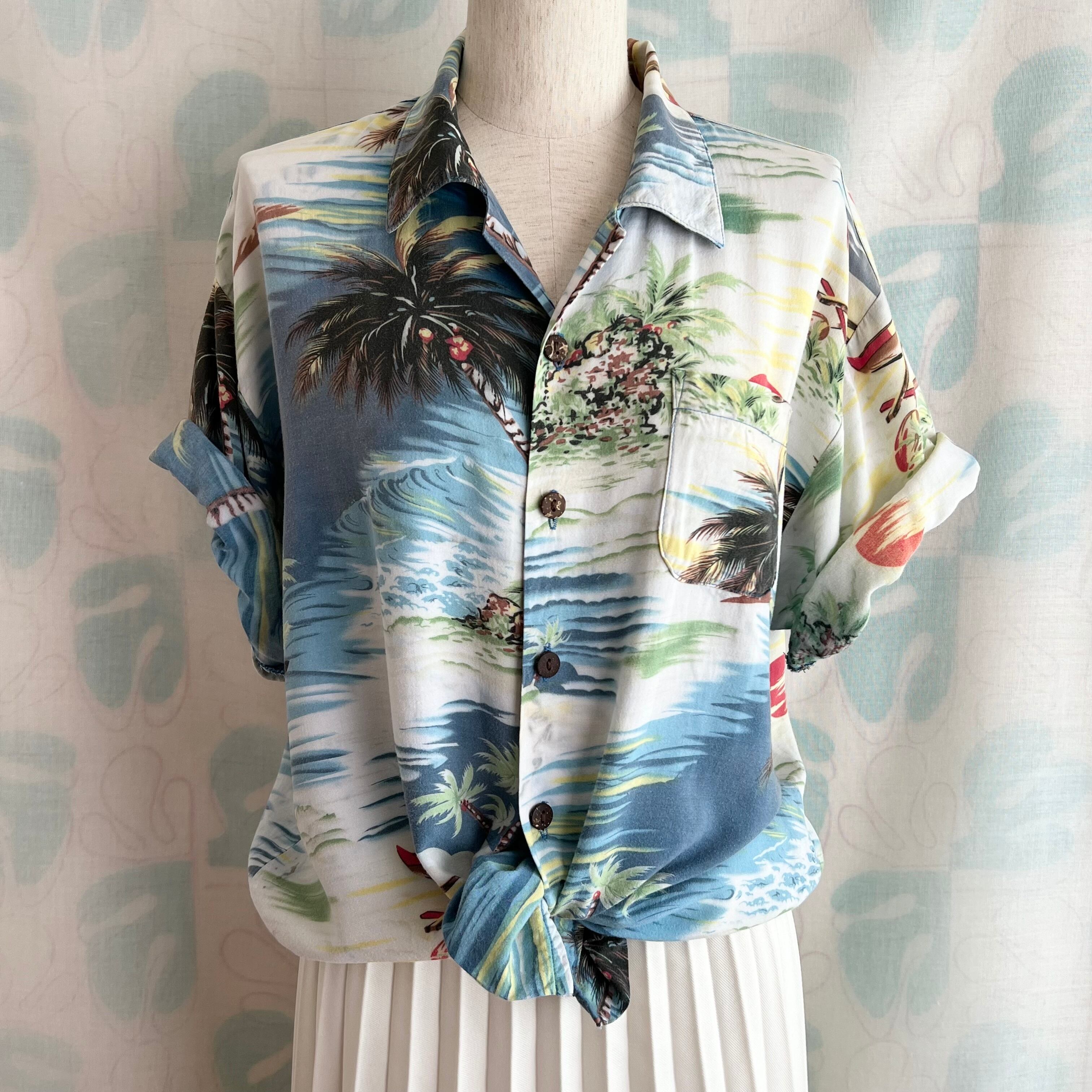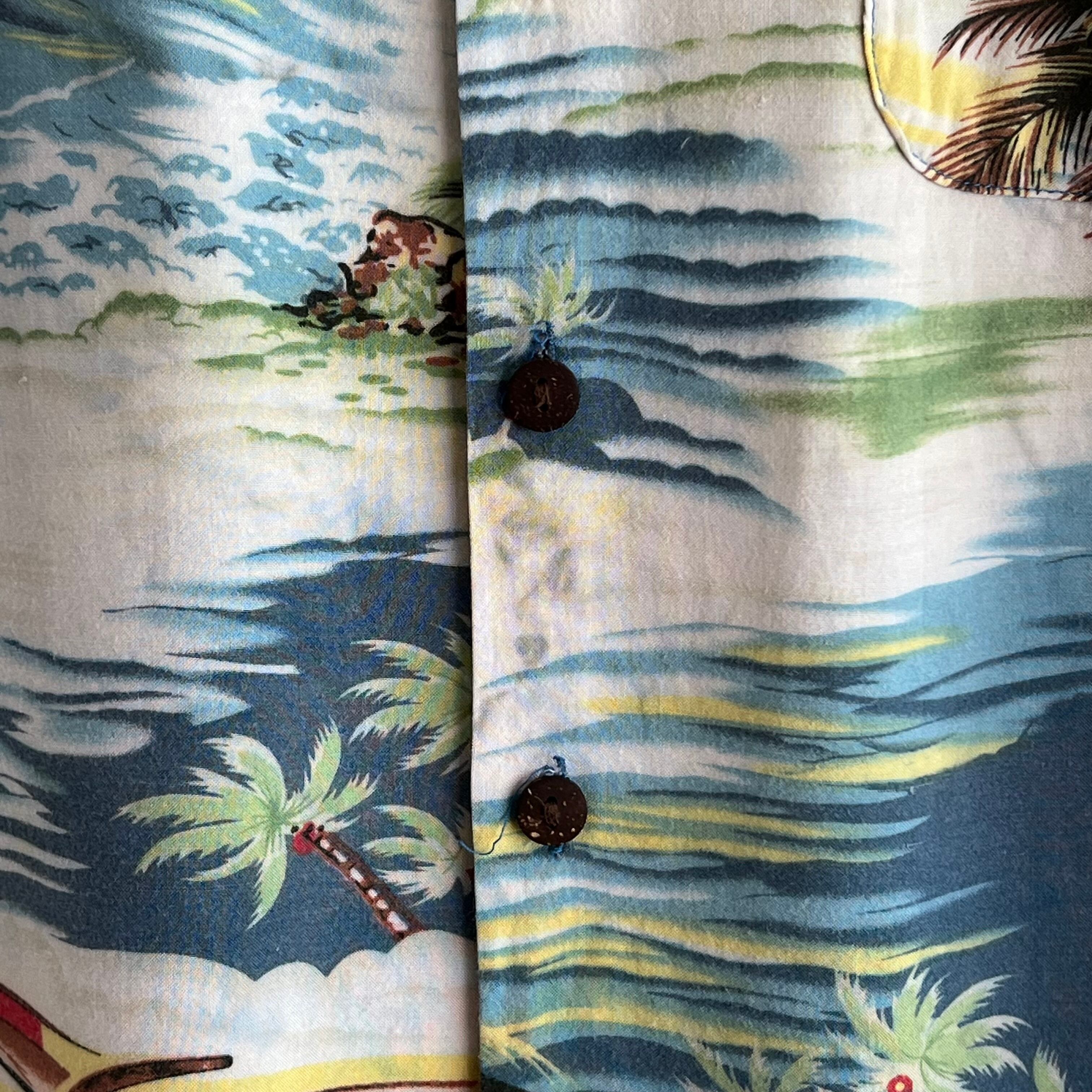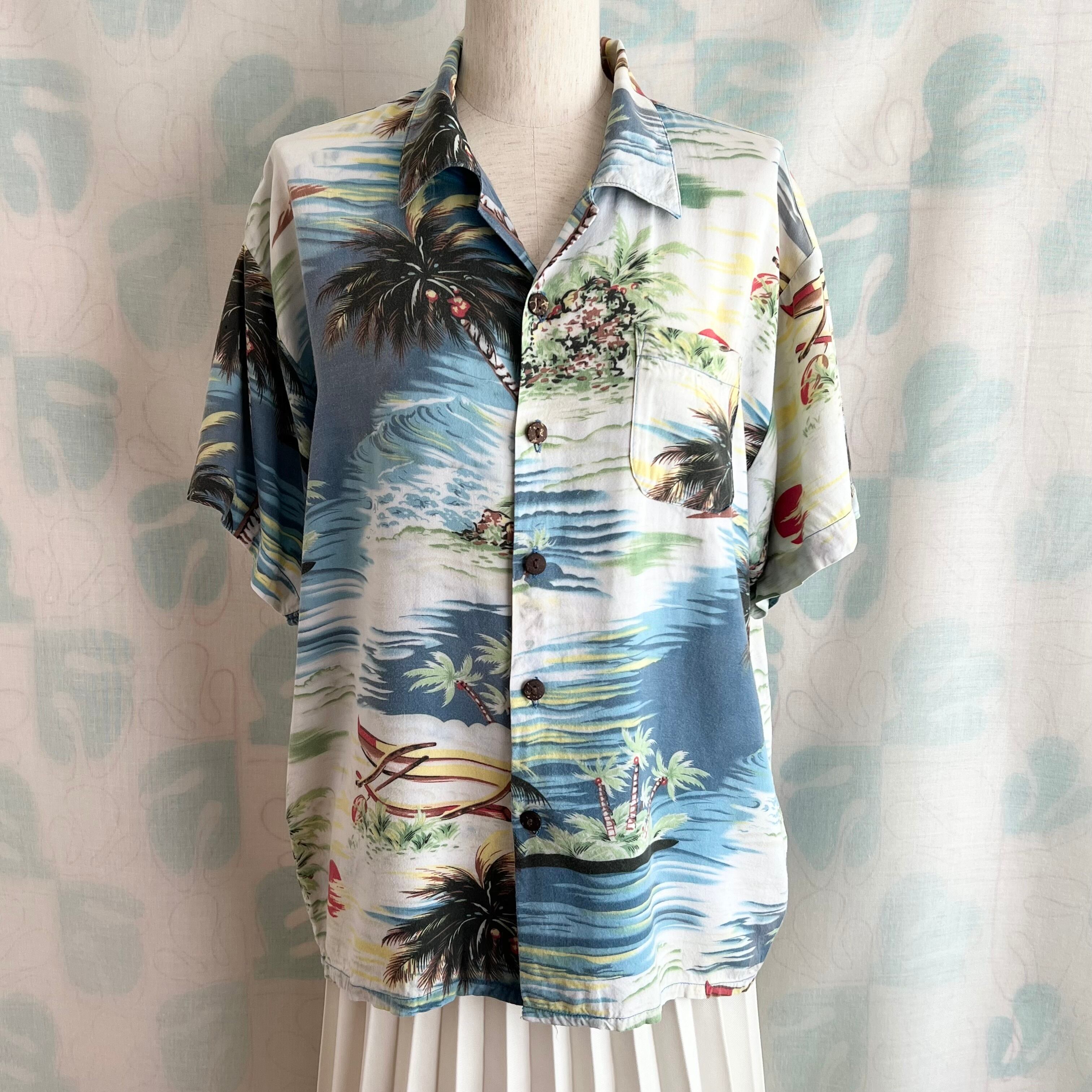used 「Breezy Ocean」メンズハワイアンシャツ。
