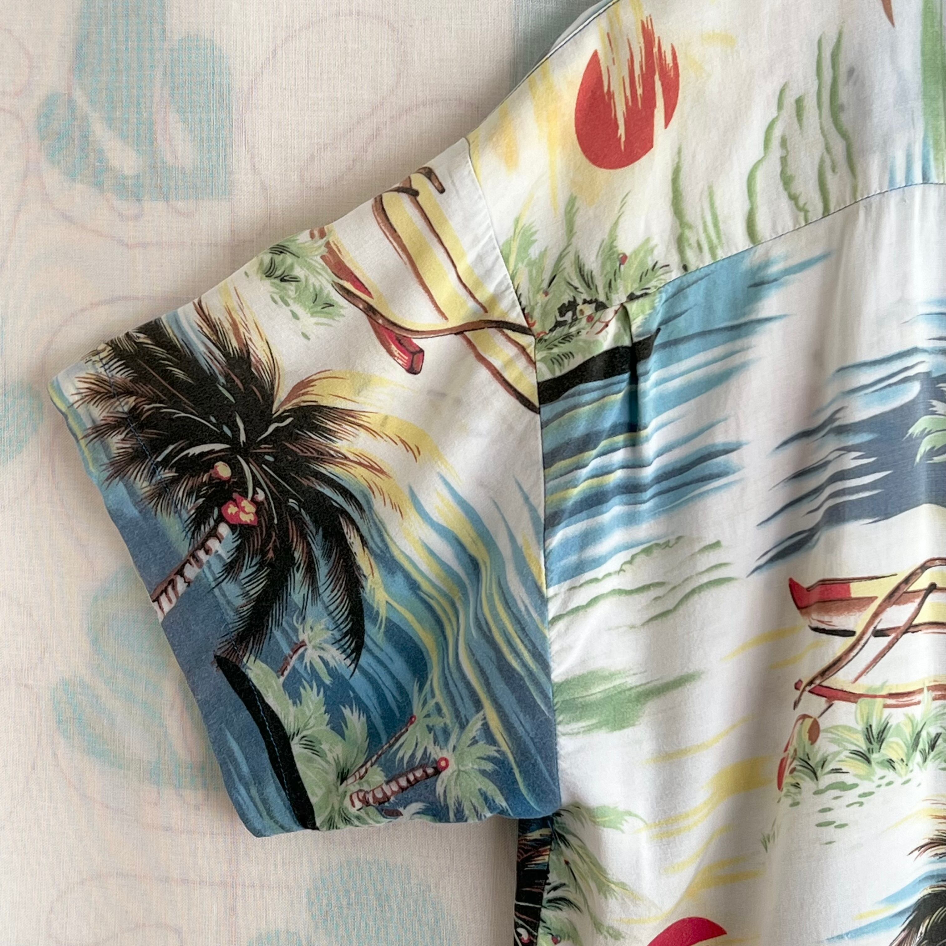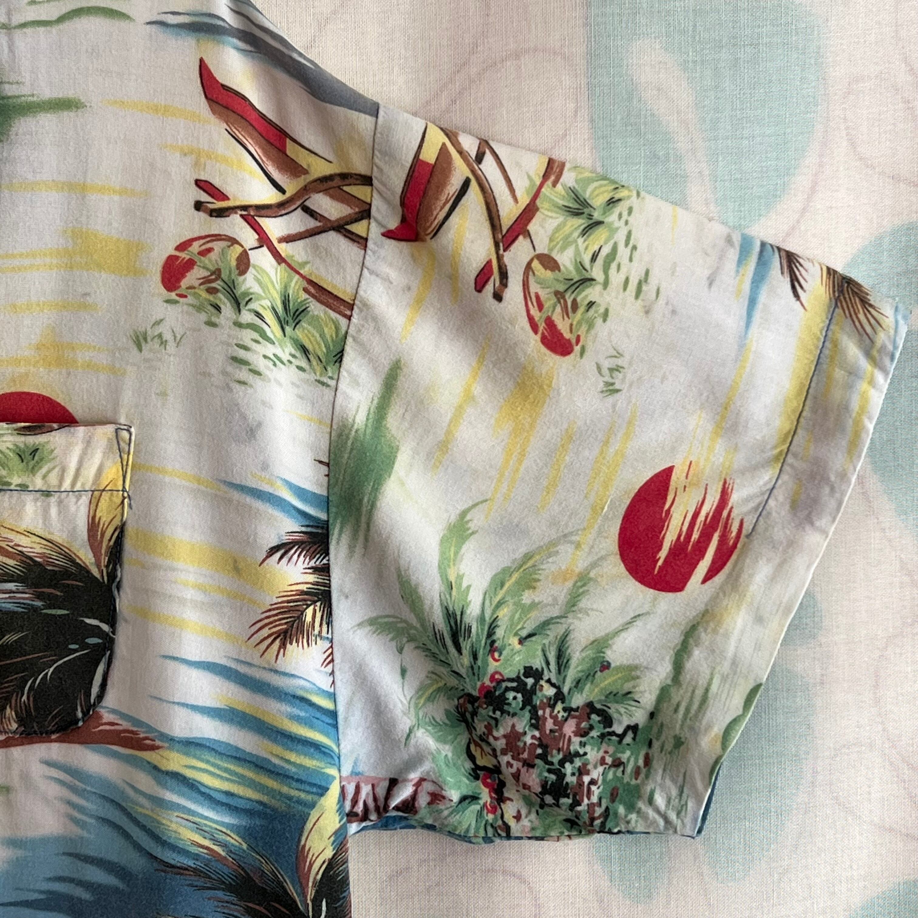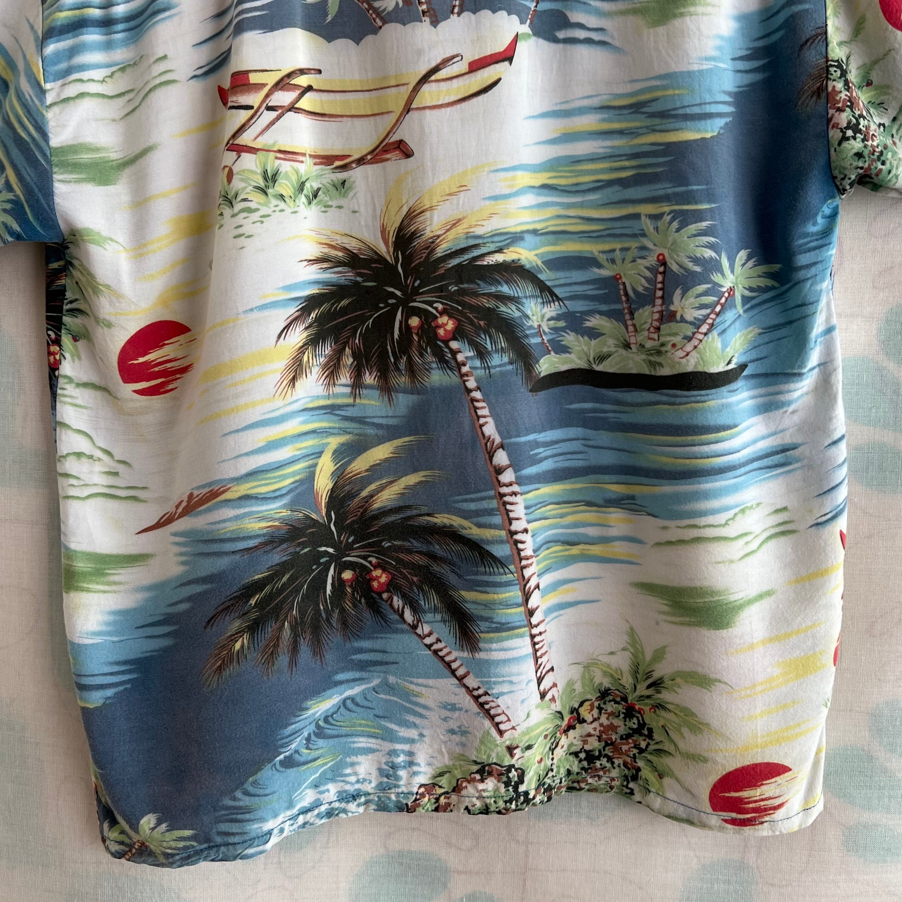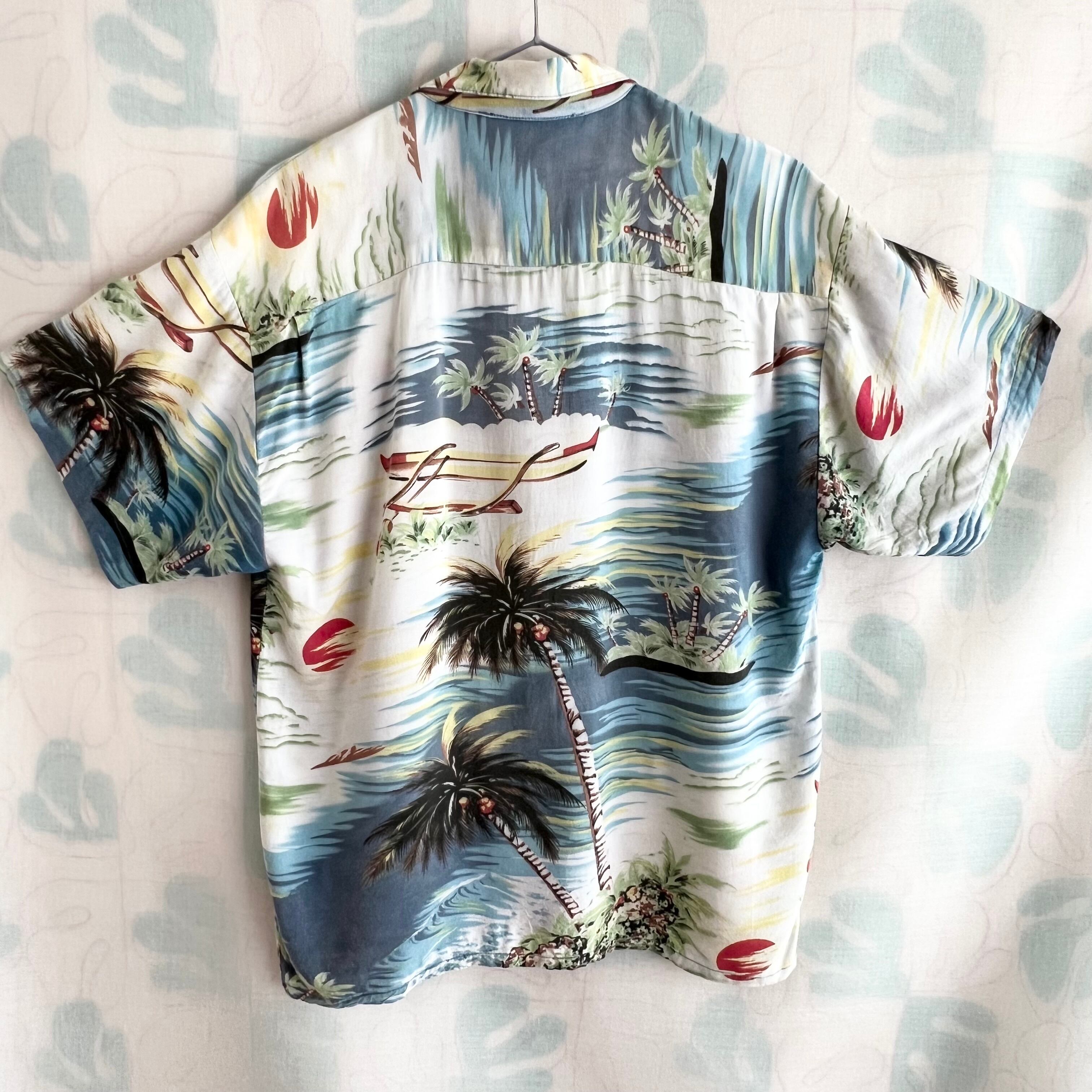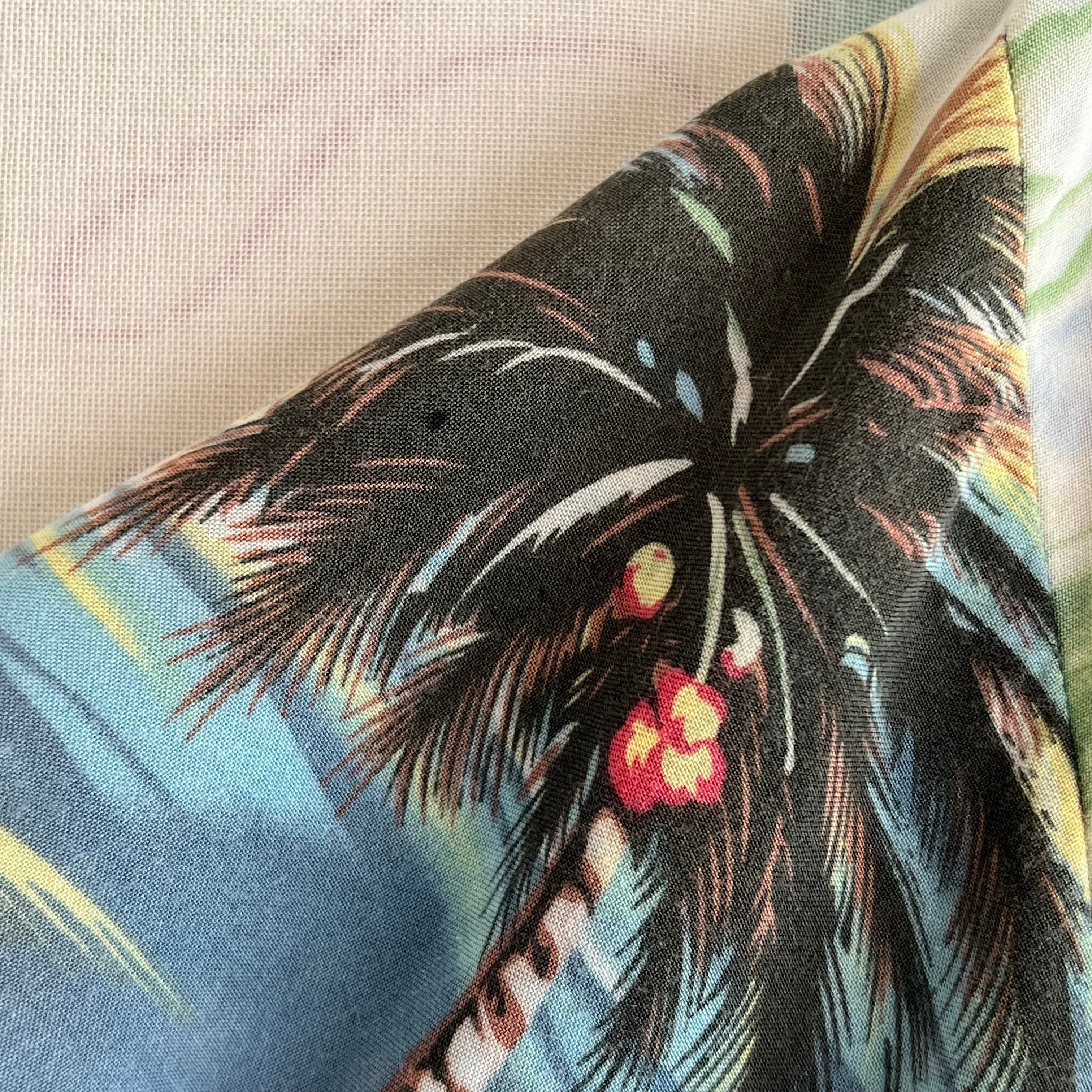 used 「Breezy Ocean」メンズハワイアンシャツ。