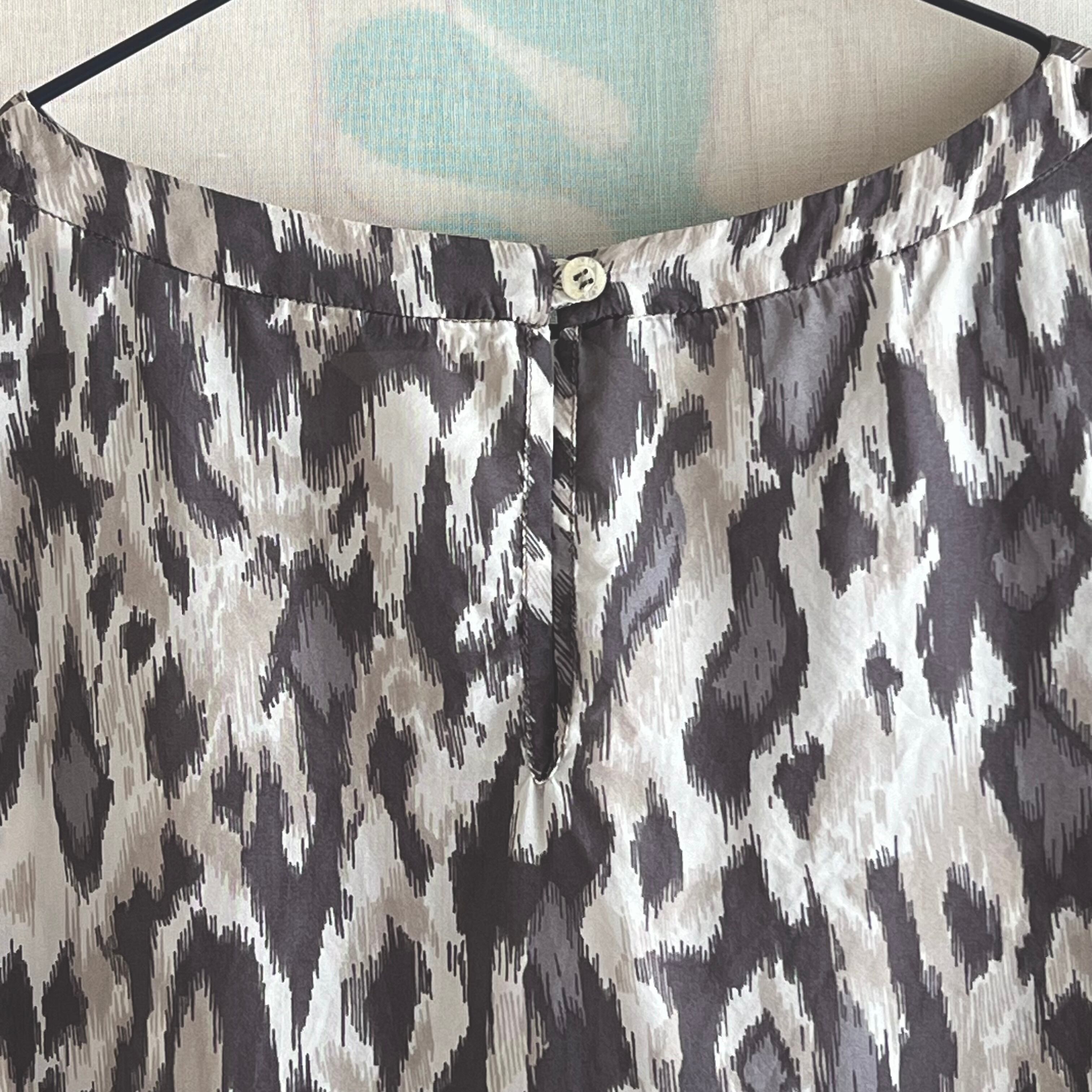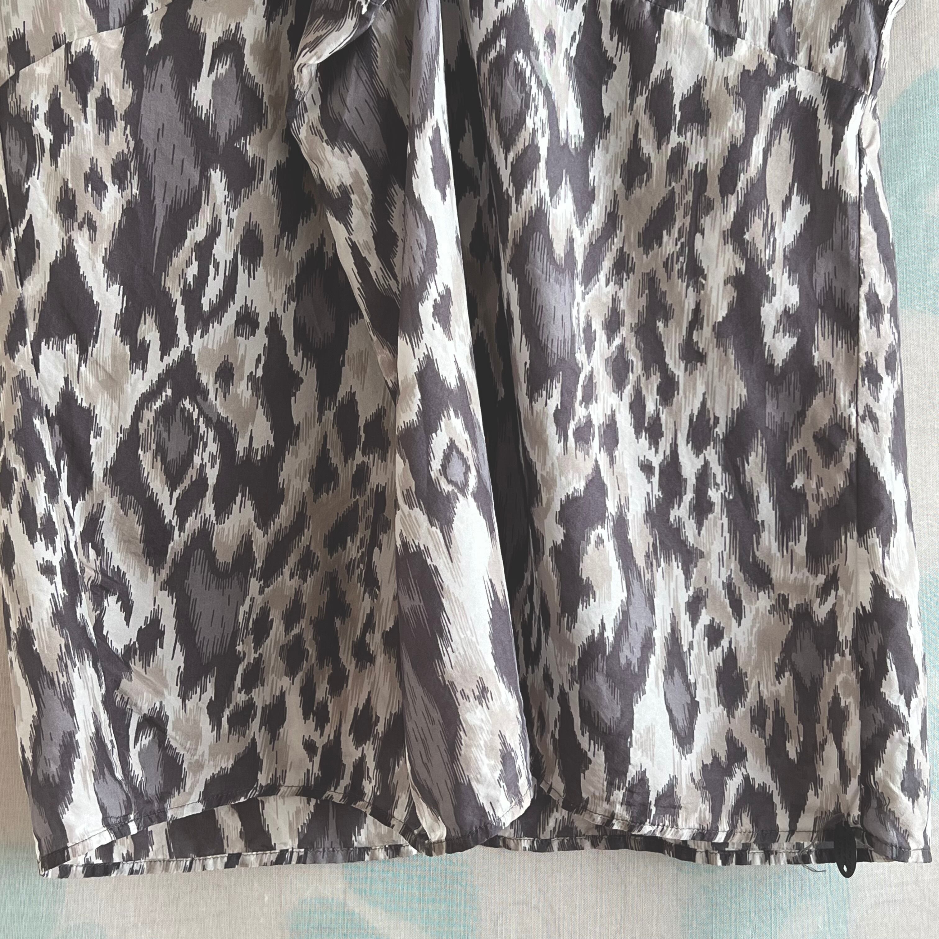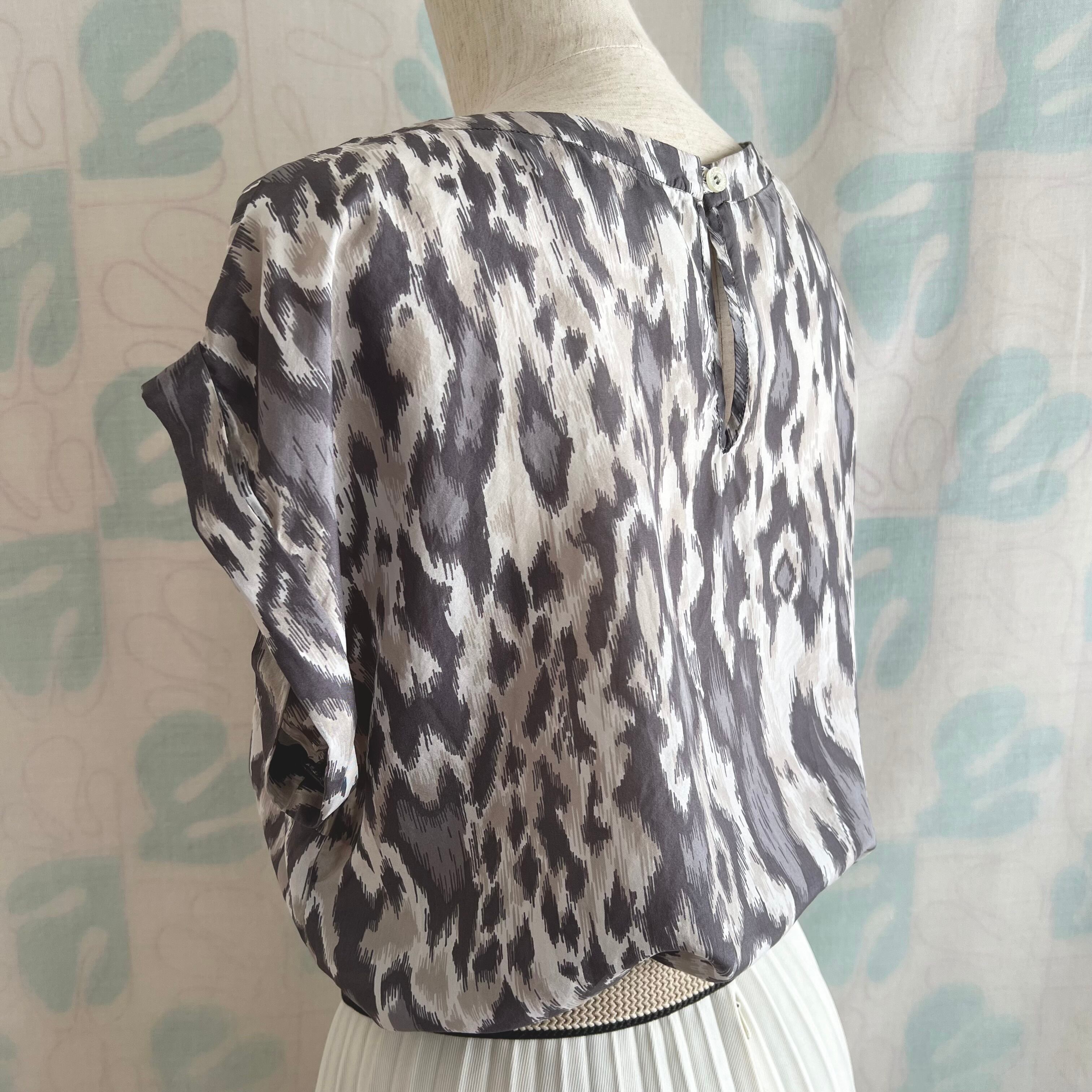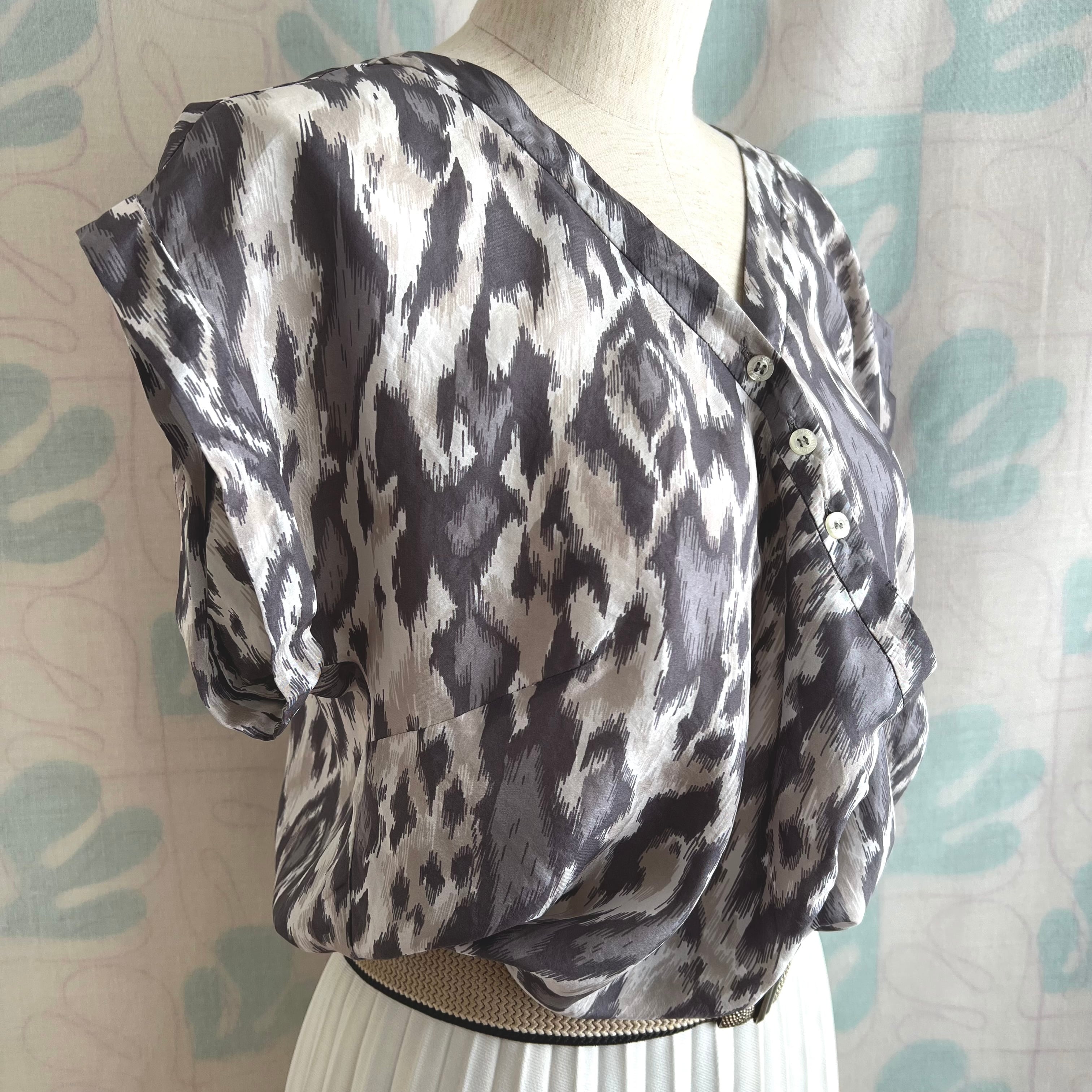 着やすい色合いのレオパード柄。ほんのり透け感のある化繊素材です。