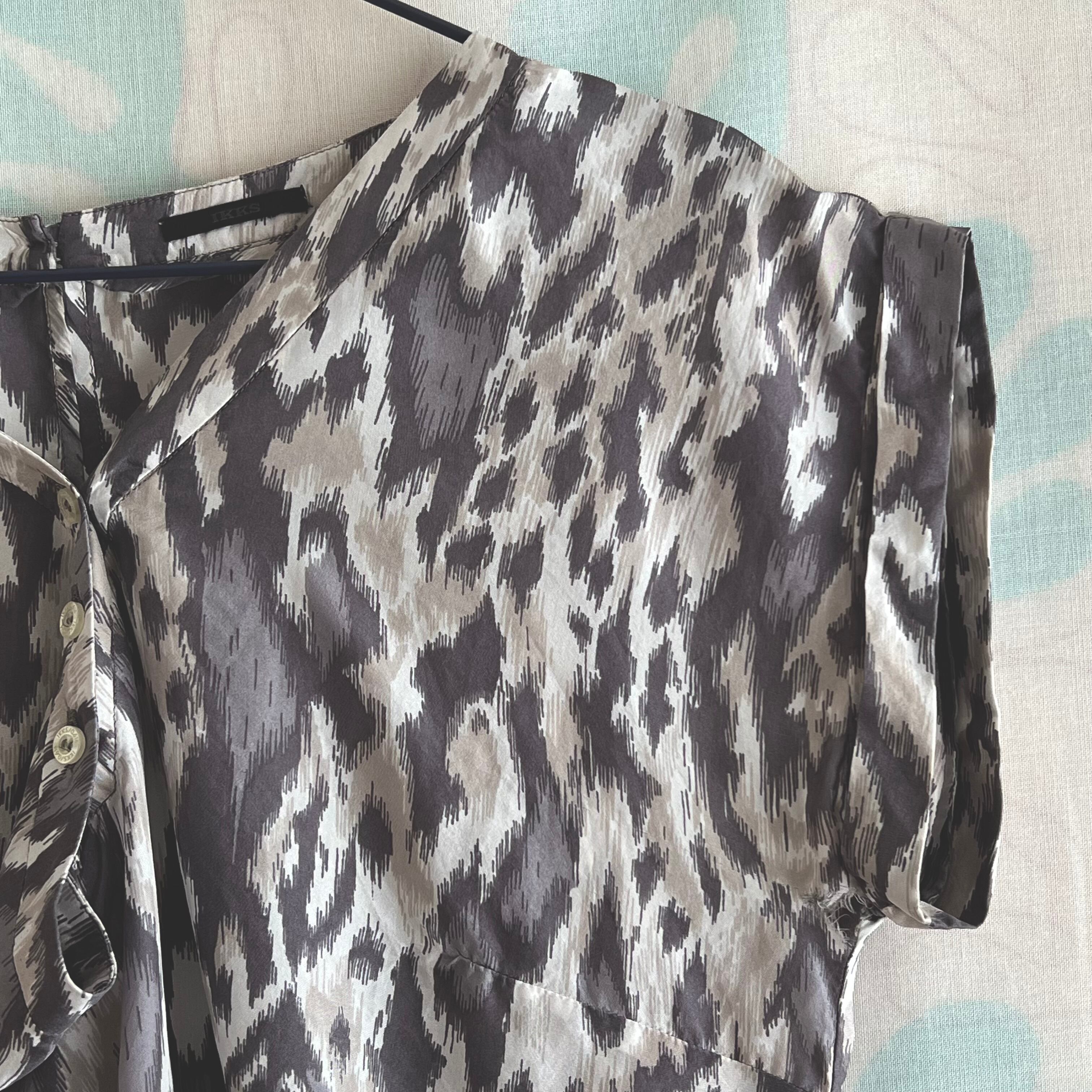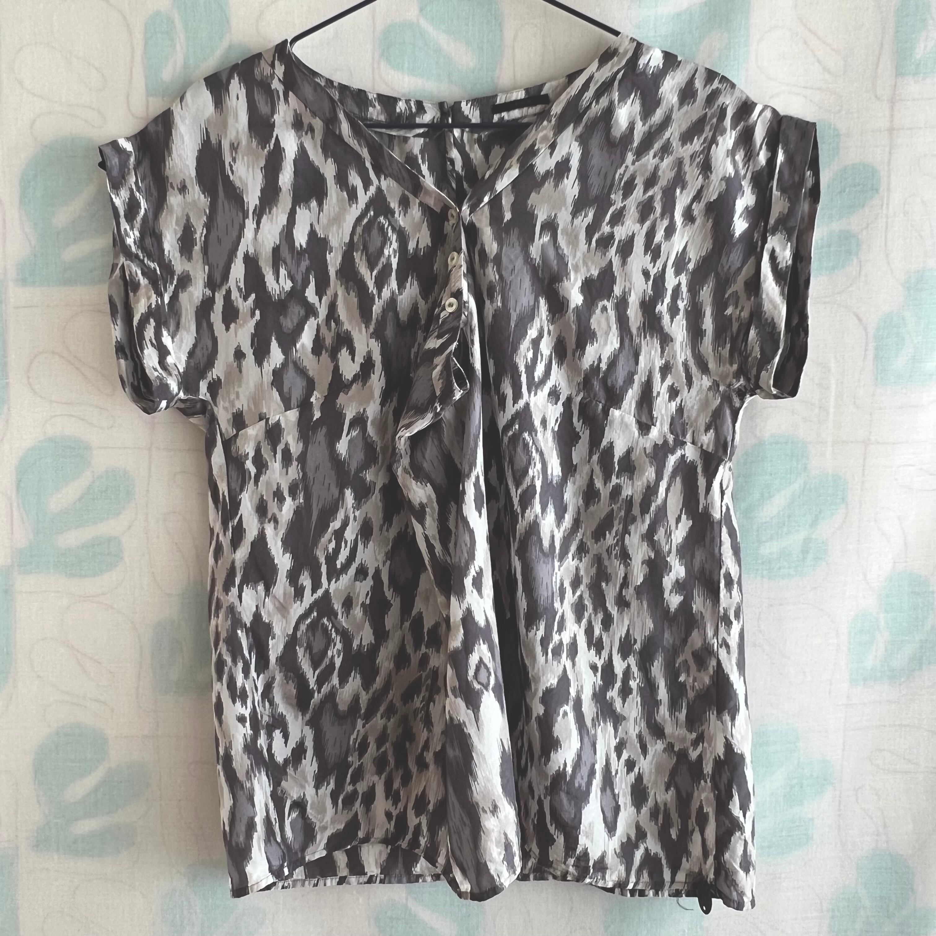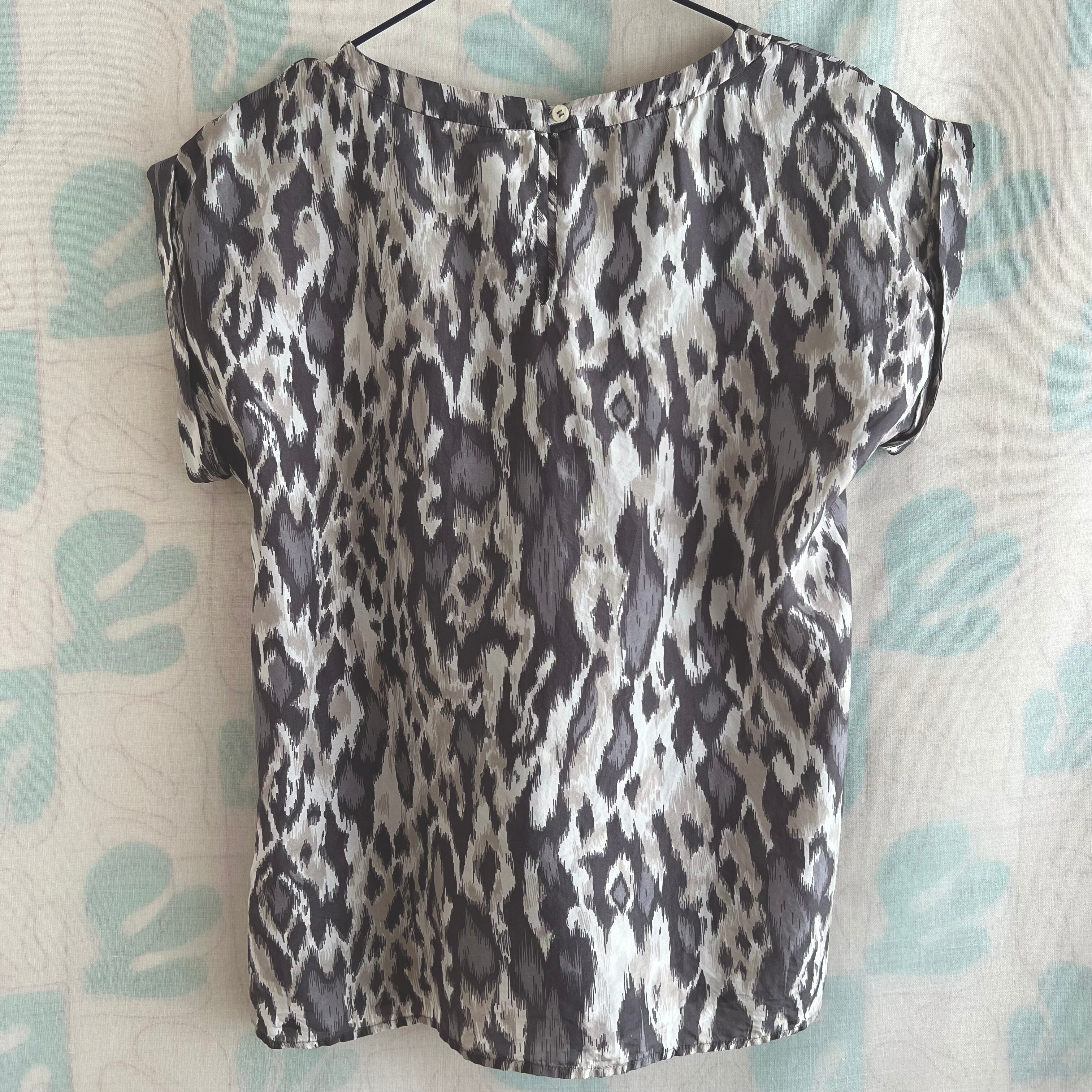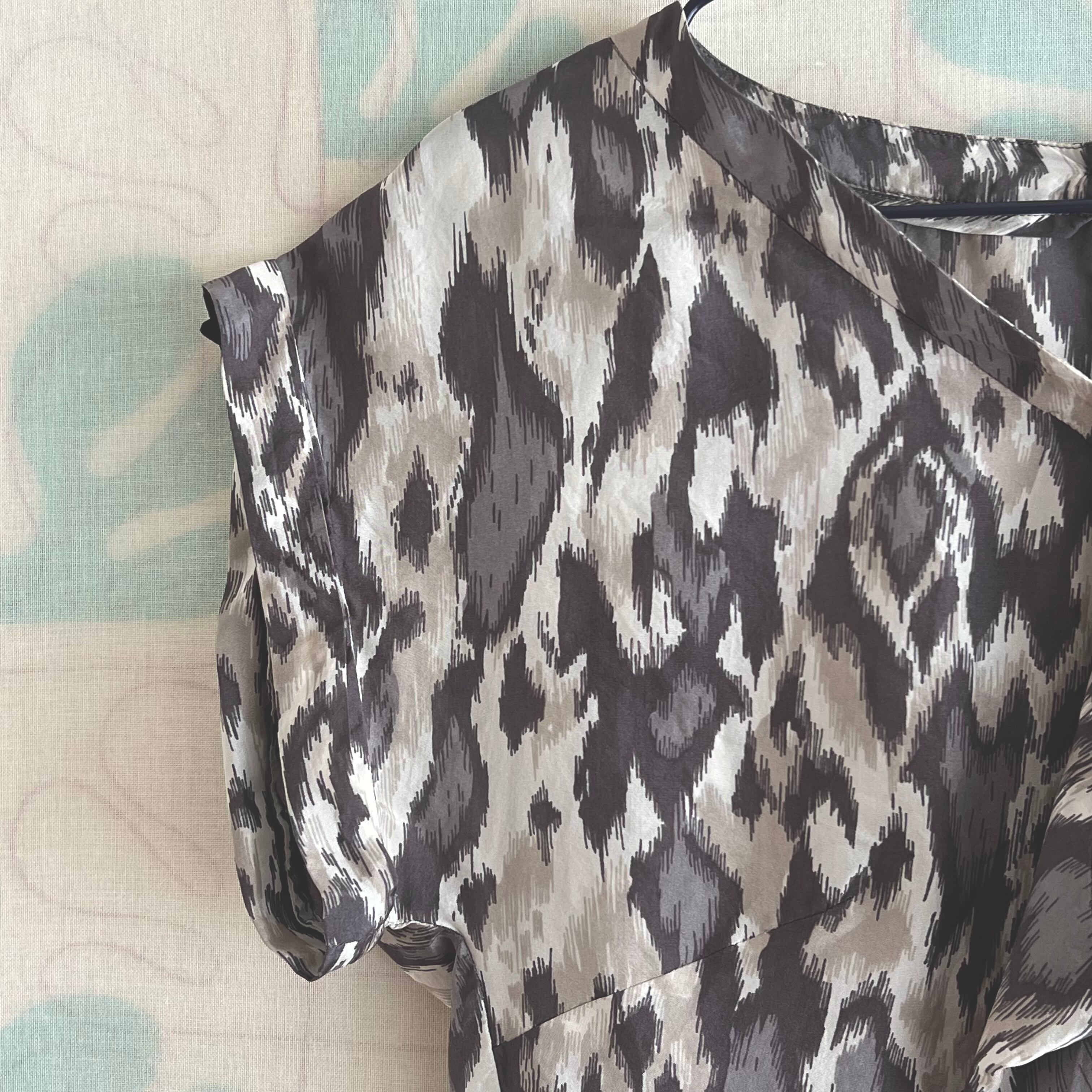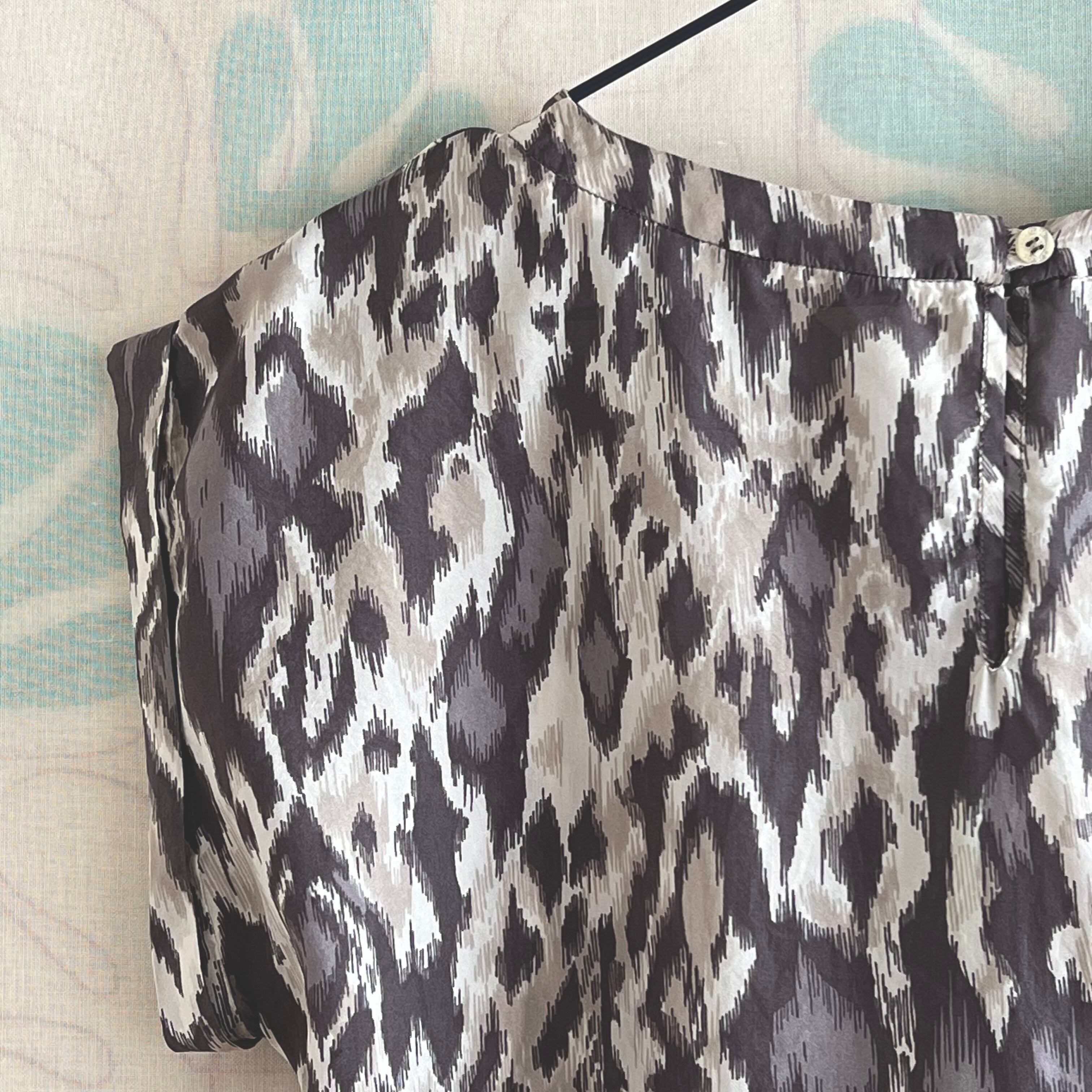 着やすい色合いのレオパード柄。ほんのり透け感のある化繊素材です。