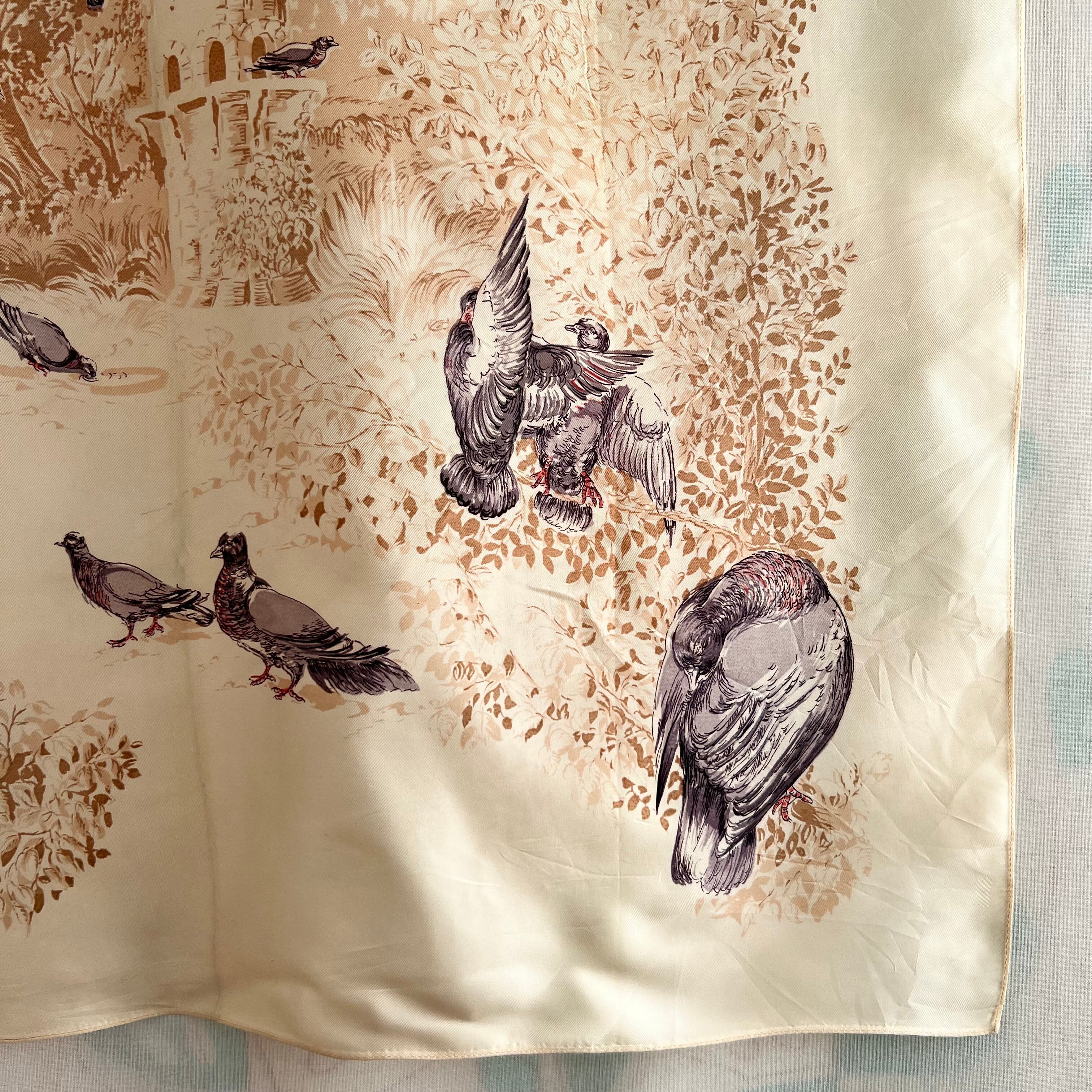森の中の塔を背景に描かれた鳩達。鳩推しすぎるカラーリングがとてもユニーク。